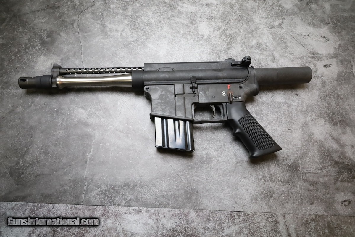 Description: Guns Listing ID: 653922 Developed following the ’94 Assault Weapons ban, the Carbon-15 was developed by Professional Ordnance. Patterned after the AR-15, the Carbon-15 utilizes polymer construction for an extremely lightweight firearm. Adherence to the AWB meant following length, weight and barrel conditions, which the Carbon-15 succeeded at. Muzzle Device does not use threads but a locking lug system. Buffer is shorter, and no handguard is present. Pistol weighs just over 2lbs. Includes box, aluminum magazine, and all original packaging and materials. SOLD Manufacturer: PROFESSIONAL ORDNANCE, INC. Model: carbon 15 Caliber Info: .223 REM/5.56 NATO Condition: Used - Non-Certified Barrels: 7.25 BARREL Finish: BLACK |