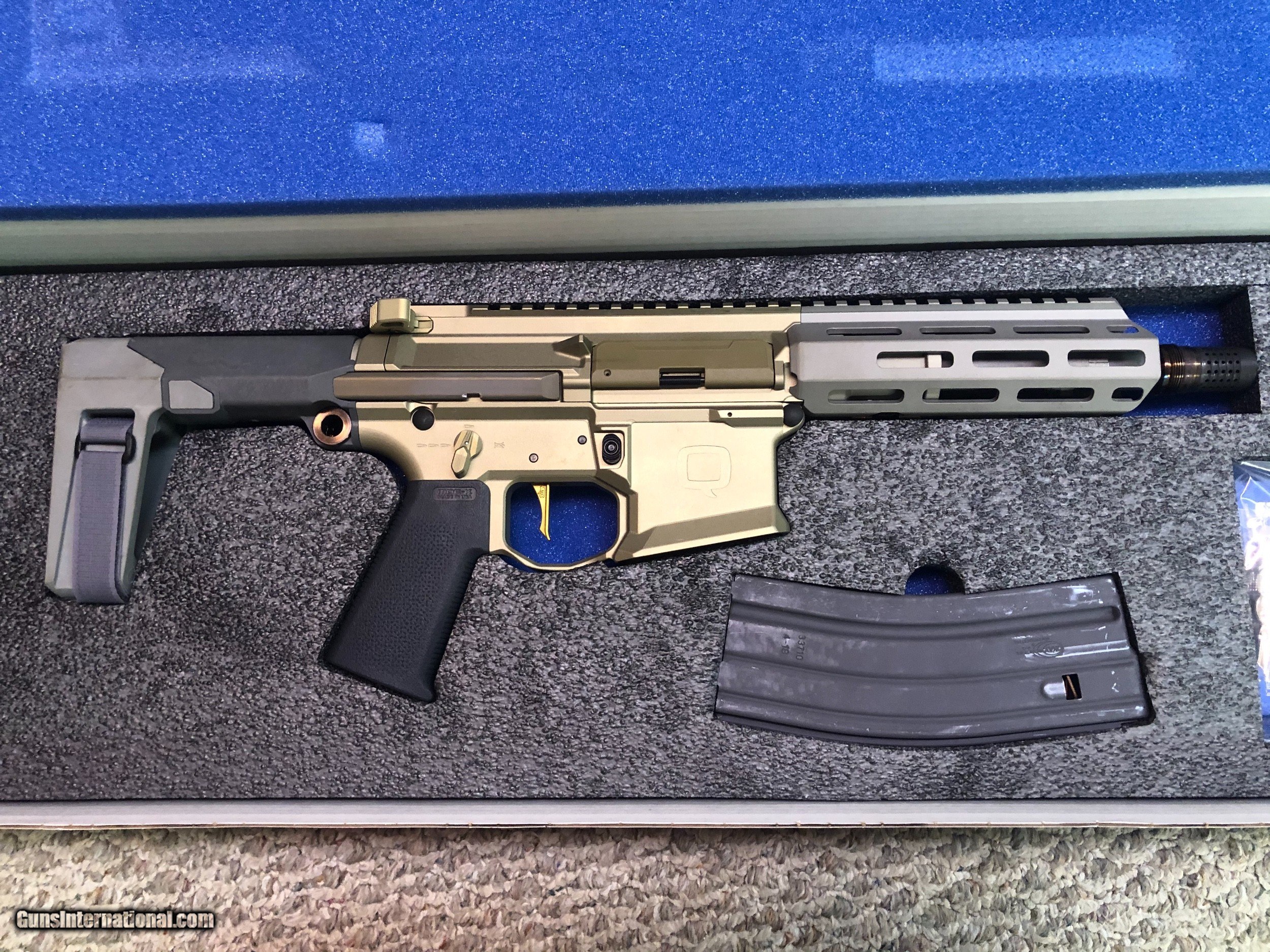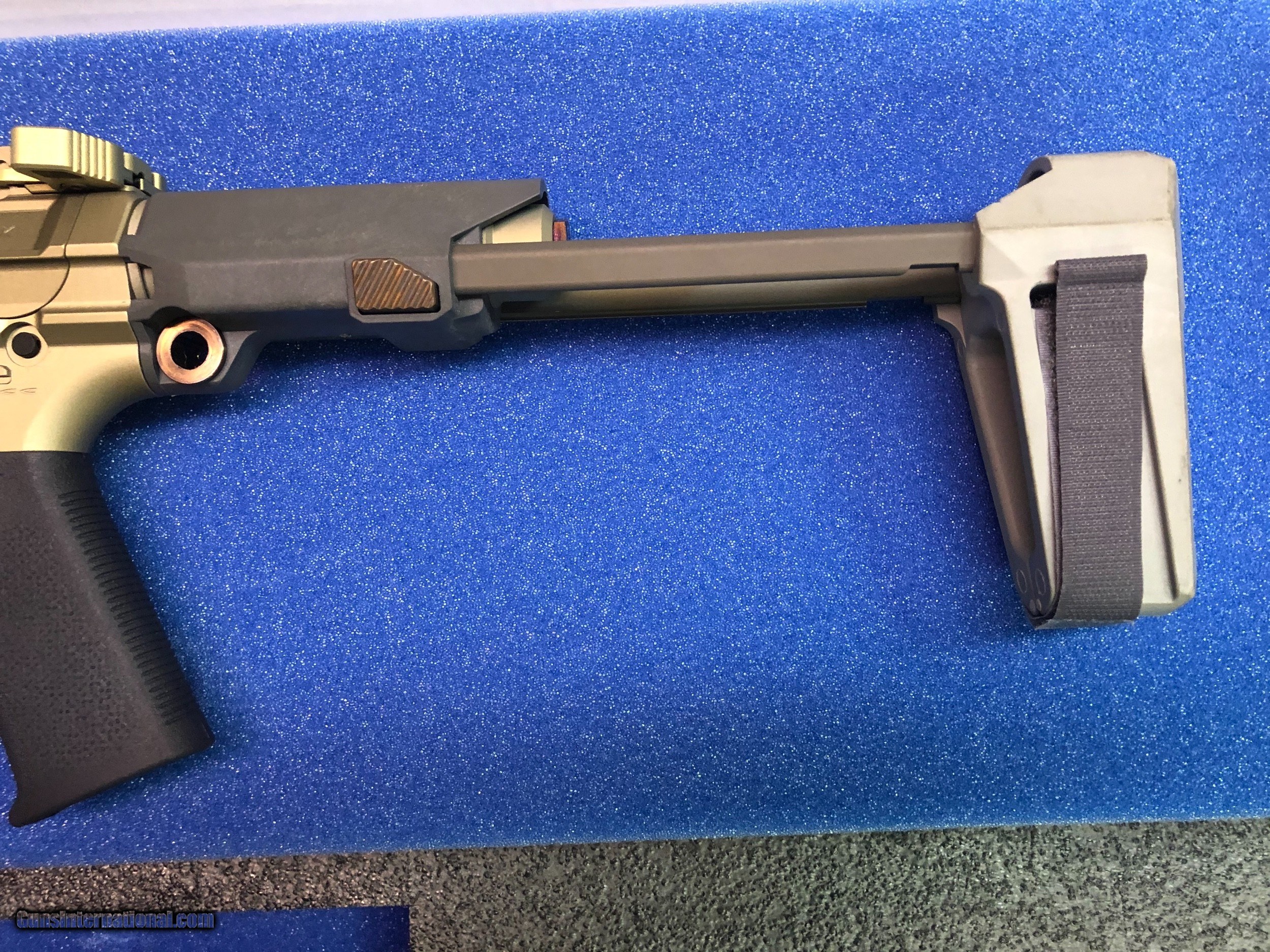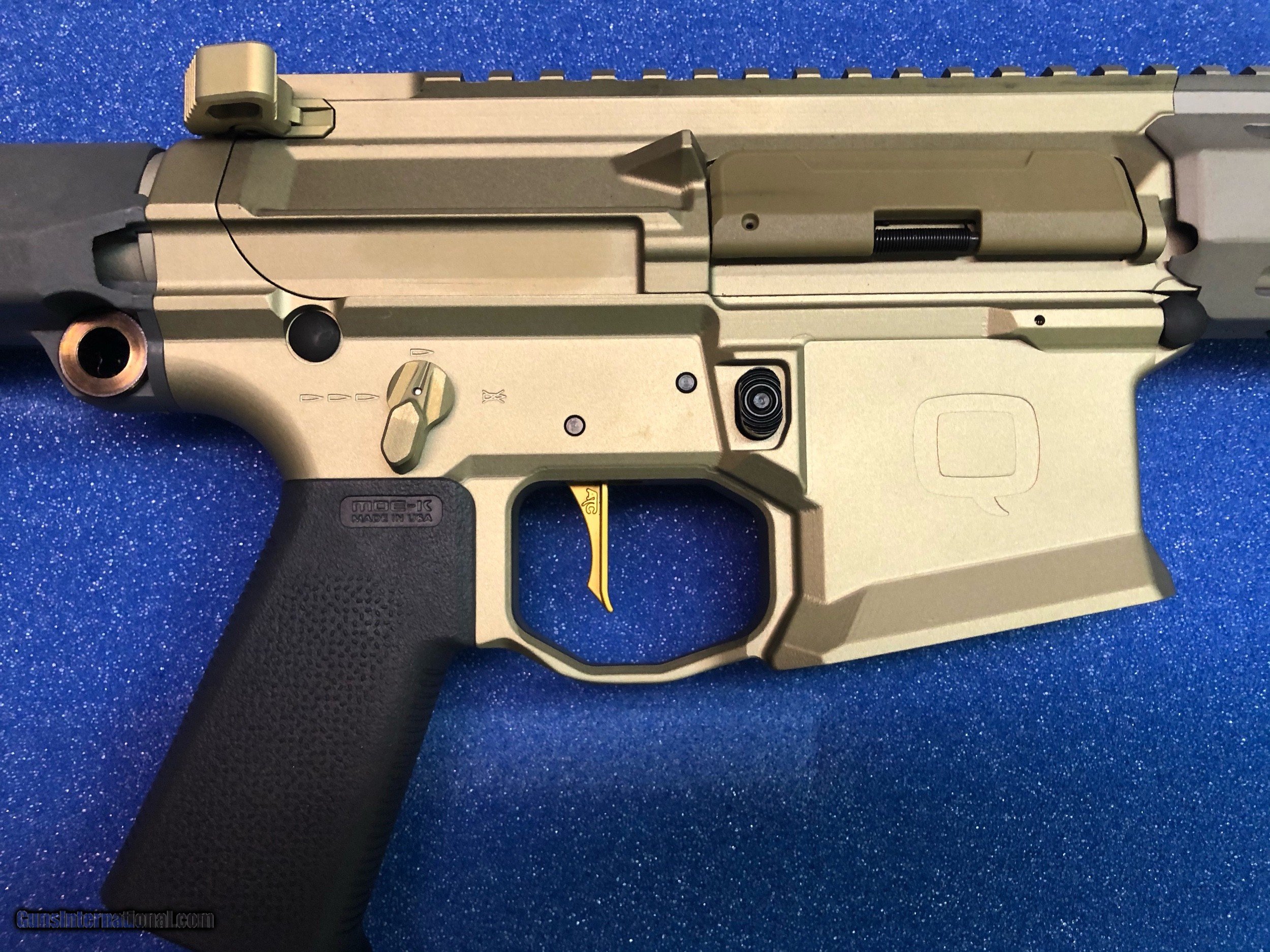 Description: UP FOR SALE is my early production Q HONEY BADGER PISTOL. This is one of the first Honey Badger Pistols delivered and sold in New Hampshire. This particular pistol was produced with the ATC trigger as originally specced (and before the swap to Geisele triggers due to supply issues). This pistol was purchased by me for my personal use (mostly fondling) and has had only a couple of mags run through. All forty of those rounds also passed through my Q Trash Panda silencer so the Cherry Bomb quick mount shows carbon ahead of the threads (as it was designed to do). I love it but I don't shoot it so it needs a new home and owner to appreciate it. The photos shown were taken today, the day of this listing, and are of this particular pistol. As is obvious the pistol is in perfect condition. Contact me with any questions. Thanks for looking. -Peter SOLD Rifle Caliber: .300 AAC Blackout Manufacturer: Q Model: Honey Badger Pistol Condition: ANIB |
