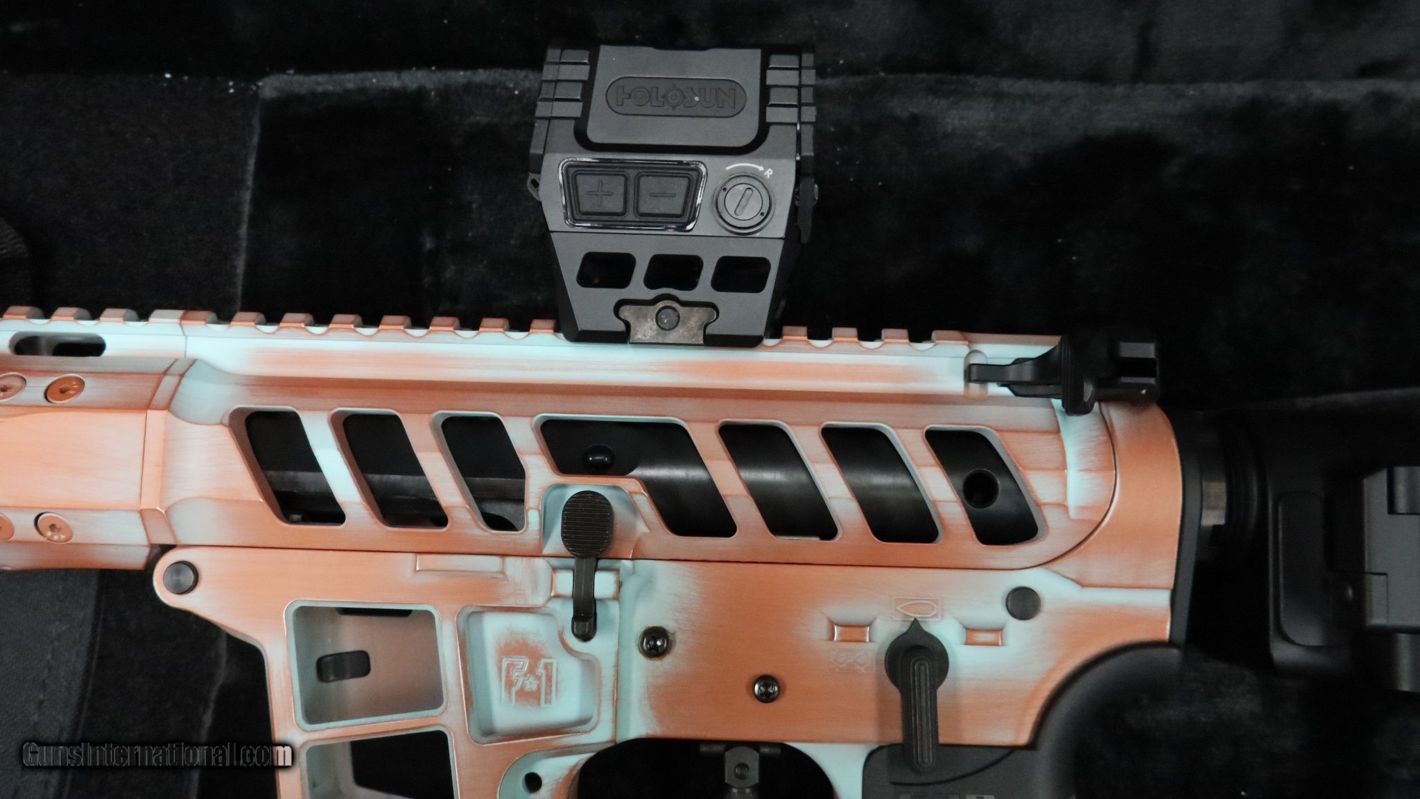 Description: Guns Listing ID: 546047 Here is lovely \"Call of Duty\" gun. The Cerakote looks factory fresh. It comes with the Holosun AEMS optic, a Sylvan Arms, and a Riker grip mounted on the side. It is in incredible shape. Everything works perfectly. It has a custom rounded trigger and FAB adjustable pistol grip. SOLD Manufacturer: QUARTER CIRCLE 10 Model: GSF Caliber Info: 9MM LUGER (9x19 PARA) Condition: Used - Non-Certified Barrels: 5" BARREL Action: SEMI AUTOMATIC Finish: custom cerakote |