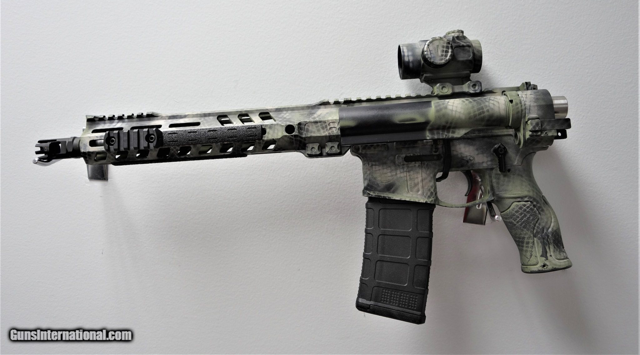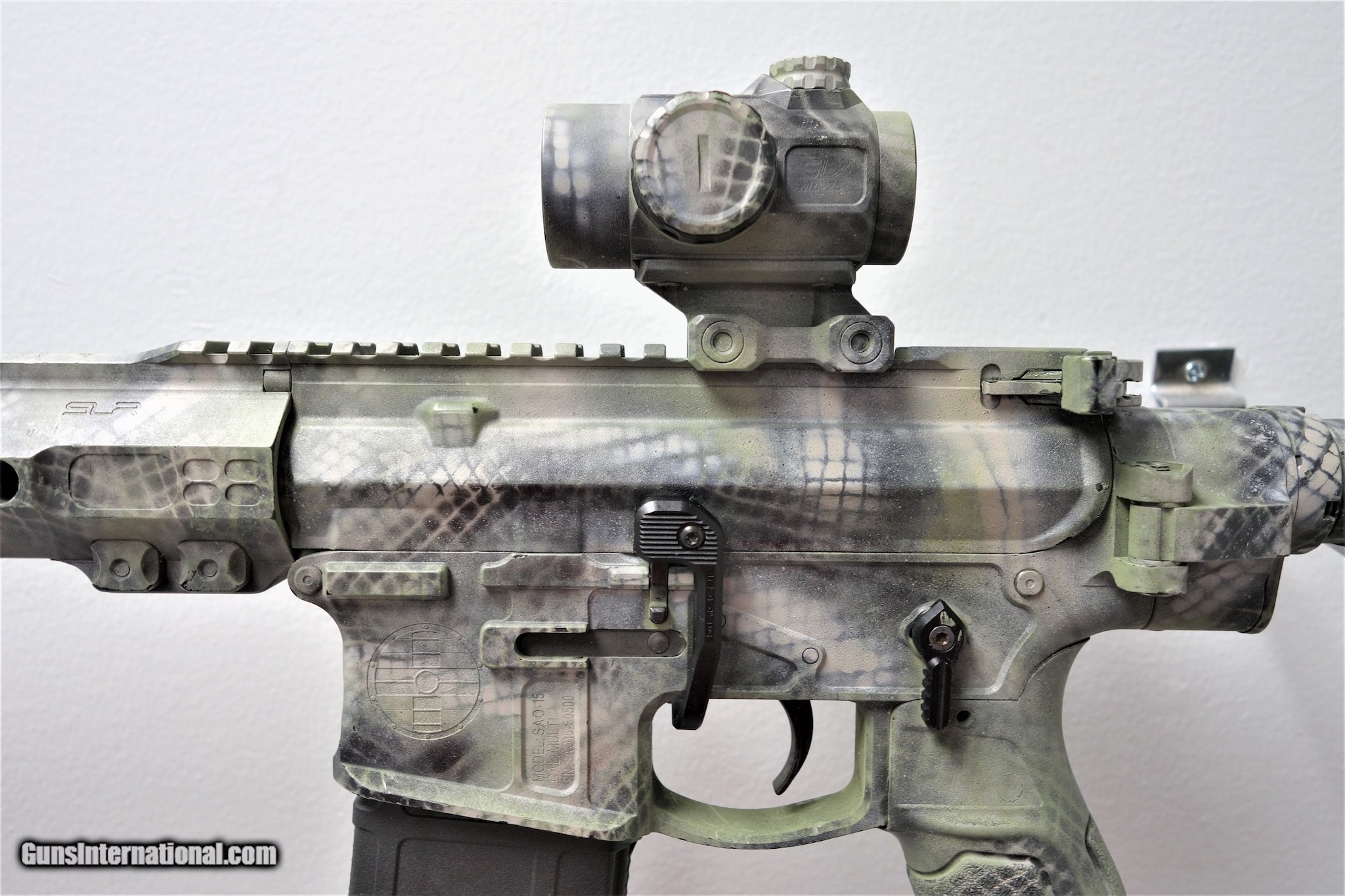 Description: Guns Listing ID: 756279 Overall good condition. This pistol has a good \"camo spray coating\". Prior to the new SBR bill, this weapon had a stock, which is why there is no camo on the tube. Shield Arms SAO-15 folding upper package Spikes Tactical bolt carrier SLR Rifle Works hand guard - and likely entire upper FAB Defense pistol grip Mag Pull B.A.D. (battery assist device Strike Industries charging handle. Primary Arms SLR 25 Red Dot SOLD Manufacturer: SHIELD ARMS Model: SAO-15 Caliber Info: 5.56X45MM NATO Condition: Used - Non-Certified Barrels: 12 BARREL Finish: CAMO |