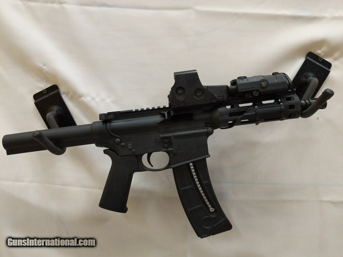 Description: Guns Listing ID: 839681 Great condition Smith & Wesson M&P15-22! Perfect affordable AR-22 with green dot optic, laser, and one 25rd magazine. 0123TVI SOLD Manufacturer: SMITH & WESSON Model: M&P15-22 Caliber Info: .22 LR Condition: Used - Non-Certified Barrels: 7 BARREL Finish: BLACK |