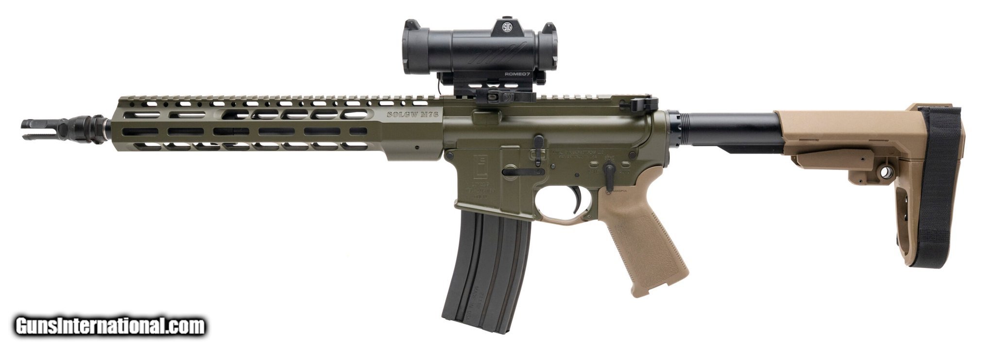 Description: Guns Listing ID: 534637 SN: TBL-109764. Modern production, 5.56 NATO with a 12.5\" barrel w/Nox flash hider. Bore is excellent. Sage Dynamics & SOLGW collaboration semi-auto tactical pistol with a Sig Sauer Romeo 7 red dot optic, Noveske Love Handle charging handle, Geissele trigger, FDE SBA3 brace, FDE Magpul pistol grip, MLOK rail system, and OD green matte finish. Overall condition is near excellent. (PR73815) SOLD Manufacturer: SONS OF LIBERTY GUN WORKS Model: SAGE DYNAMICS LOYAL 9 M76 Caliber Info: 5.56X45MM NATO Condition: Used - Non-Certified Barrels: 12.5 Action: SEMI AUTOMATIC Finish: OD GREEN AND FLAT DARK EARTH |