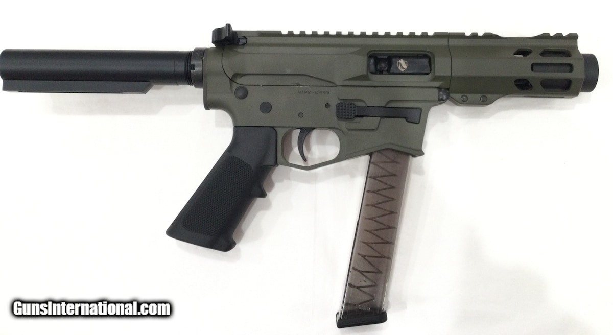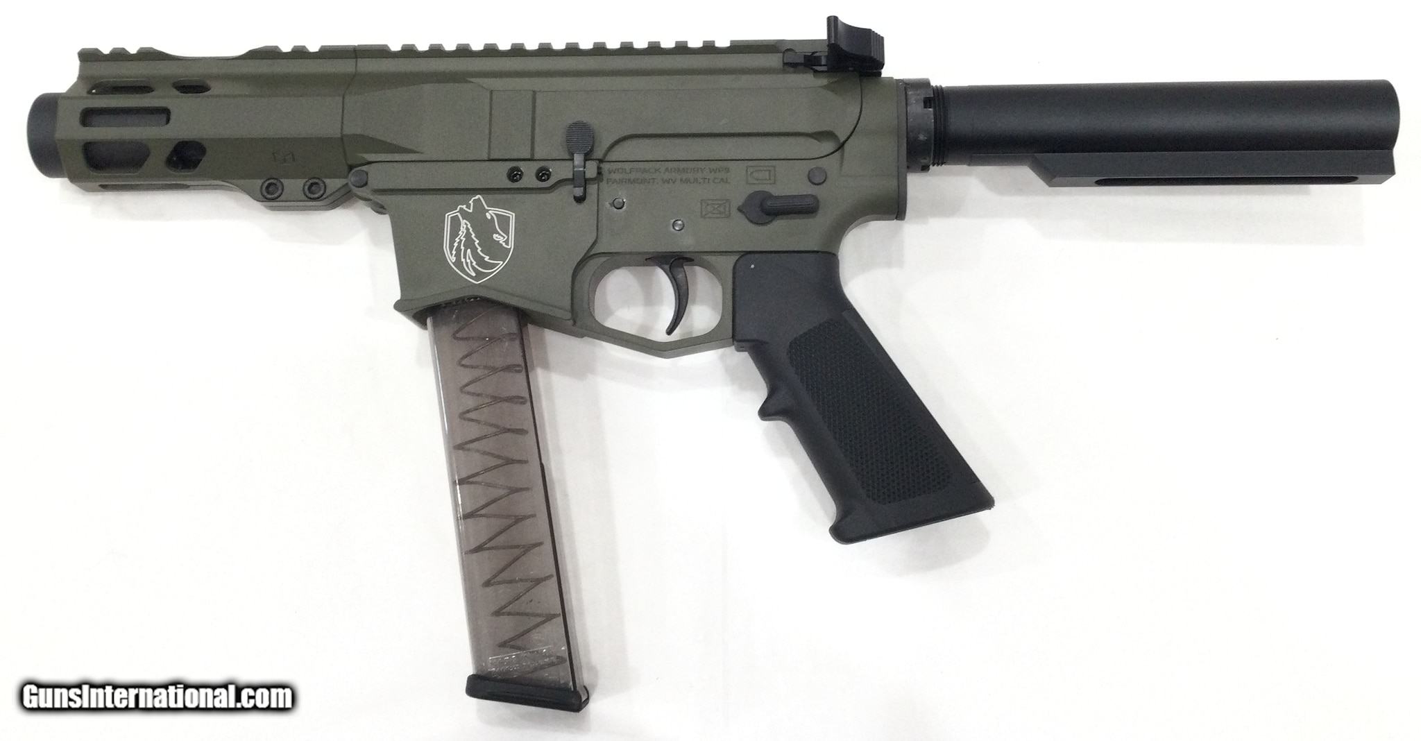 Description: Guns Listing ID: 731603 BRAND NEW Features and Specs: LOWER RECEIVER – Billet Aluminum. Competition Flared Magwell designed to accept Factory Glock Magazines. Precision CNC machined to upper receiver for zero movement between the upper and lower receivers. UPPER RECEIVER – Precision CNC Machined Billet Aluminum HANDGUARD – 4” Lightweight Modular M-LOK BARREL – 4” 9x19 4150CMV Barrel (1:10 twist) MUZZLE DEVICE – WPA Blast Master BOLT CARRIER GROUP – 8620 Carrier Material, Salt Bath Nitride Case Hardened, MPI Tested GAS SYSTEM – Direct Blowback Operated TRIGGER – Mil Spec Trigger Charging Handle – Mil Spec Charging Handle PISTOL GRIP – A2 Pistol Grip FINISH – Hardcoat Anodized OD Green SOLD Manufacturer: WOLFPACK ARMORY Model: WP9 Caliber Info: 9MM Condition: Used - Non-Certified Barrels: 4 BARREL |