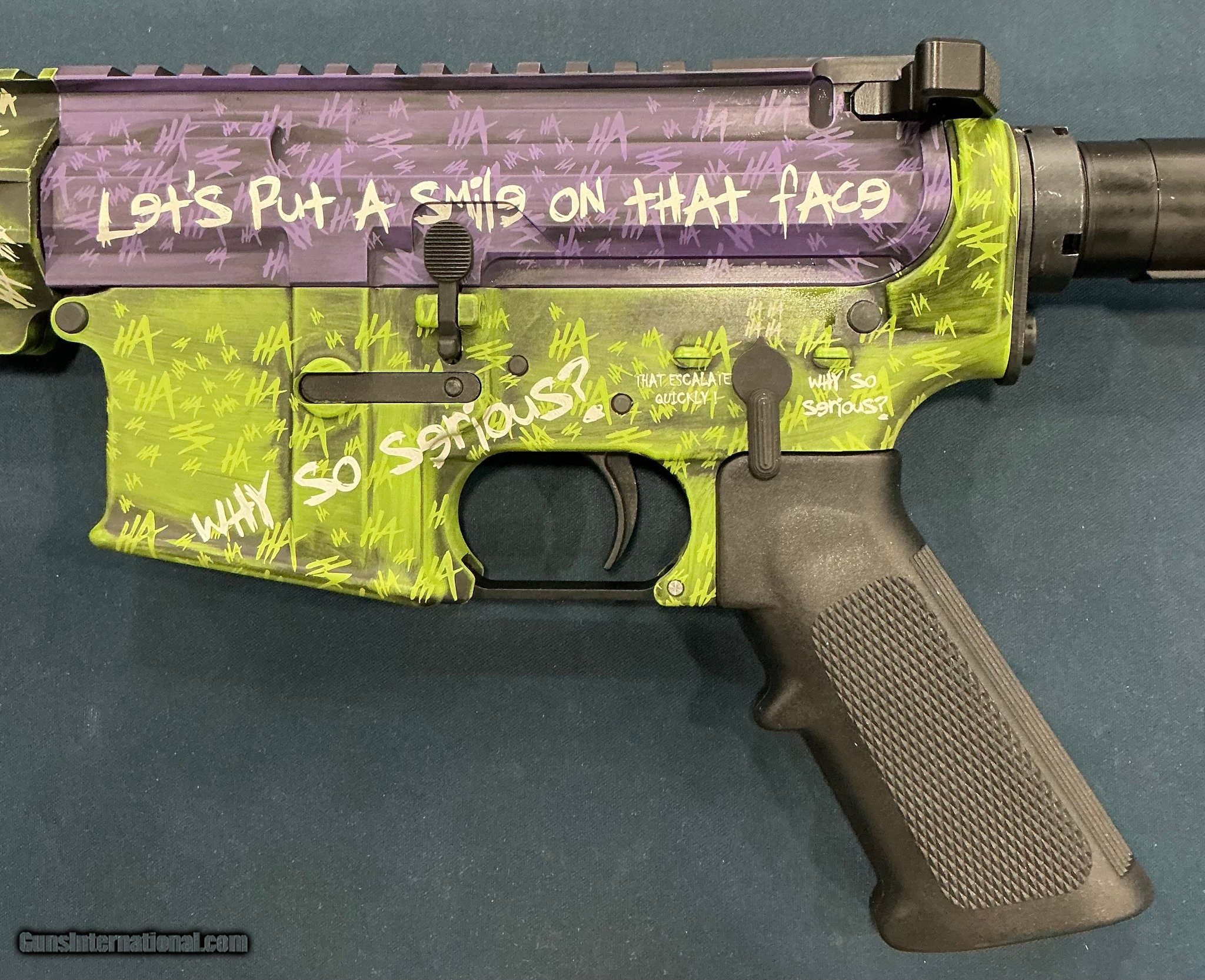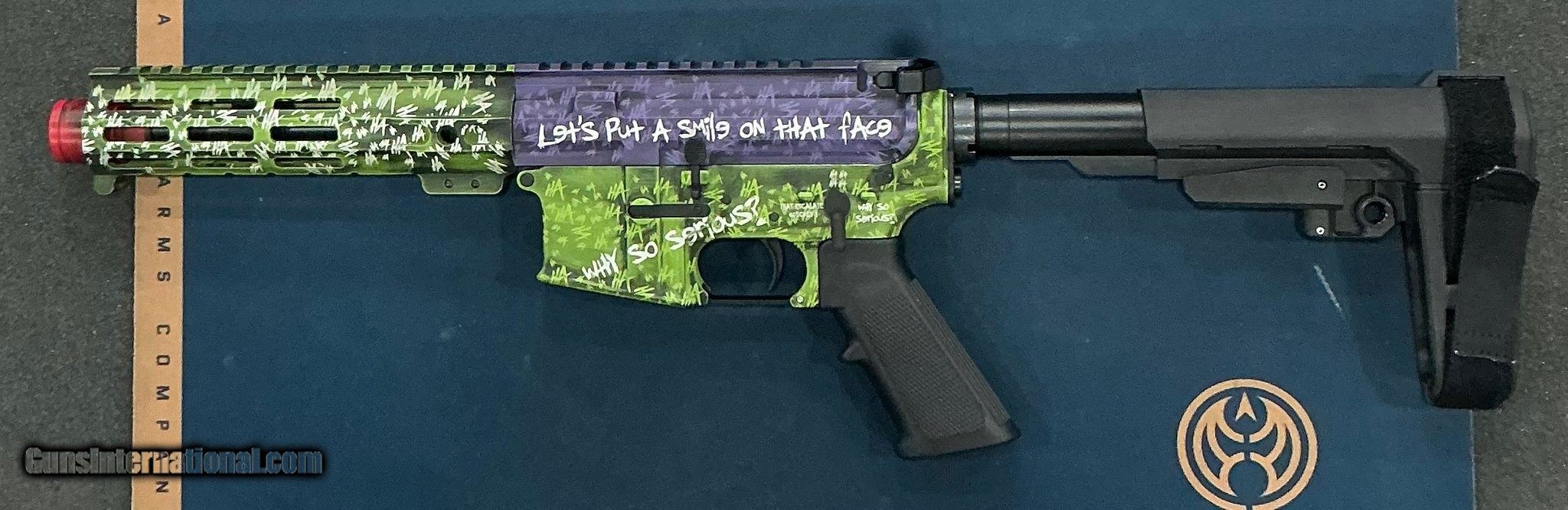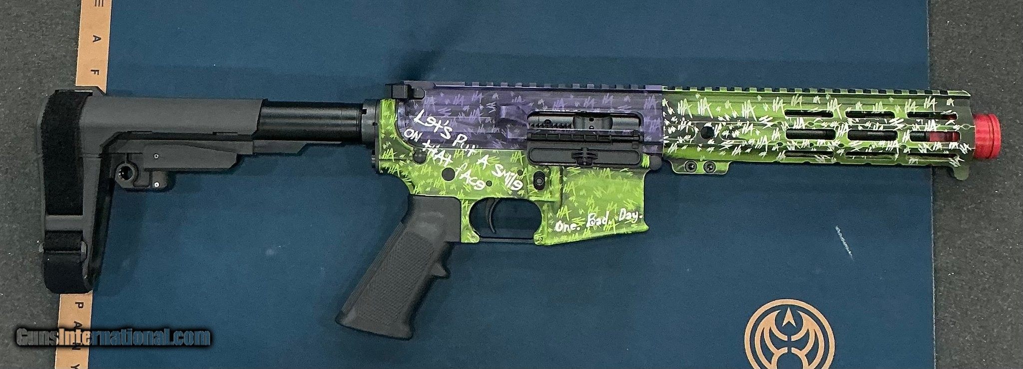 Description: Guns Listing ID: 608024 The Zeus Arms Joker Pistol is a custom, compact AR-style pistol chambered in 5.56 NATO, known for its sleek design, 7075-T6 aluminum receivers, and features like flared magwells, M-LOK handguards, and SBA-3 braces, offering a unique look and tactical performance for CQB or range use, often with a black nitride finish and personalized texturing. Key Features & Specifications (Common Configuration) Caliber: 5.56 NATO / .223 Rem. Receiver: Billet 7075-T6 Aluminum Barrel: 7.5\" (or longer options available) Handguard: 7\" M-LOK Brace: SBA-3 Pistol Brace Controls: Ambidextrous Finish: Type III Hard-Coat Anodized, often with custom texturing Muzzle Device: Birdcage or Flash Can (depending on model) Gas System: Pistol-length (for 7.5\" barrel) Capacity: 30+1 Rounds (with standard AR mags) Origin: 100% USA Made Design & Purpose Custom Aesthetic: The \"Joker\" name reflects its distinct look, with unique texturing and sometimes custom engraving on the GHOST lower receiver for a clean finish. Versatile Platform: It‚s built for versatility, suitable for close-quarters combat (CQB), training, or tactical applications. High-Quality Components: Uses durable materials, including 7075-T6 aluminum and nitride-finished barrels, ensuring reliability. In essence, the Zeus Arms Joker Pistol is a customized, high-performance AR pistol designed for users wanting a unique firearm that doesn‚t sacrifice functionality for style. Gun has never been fired. Manufacturer: ZEUS Model: AETHER JOKER Caliber Info: 5.56X45MM NATO Condition: Used - Non-Certified Barrels: 7.5" BARREL Action: SEMI AUTOMATIC Finish: GREEN AND PURPLE Weight: 5.4 LBS. Price: $999.99 Contact Seller |