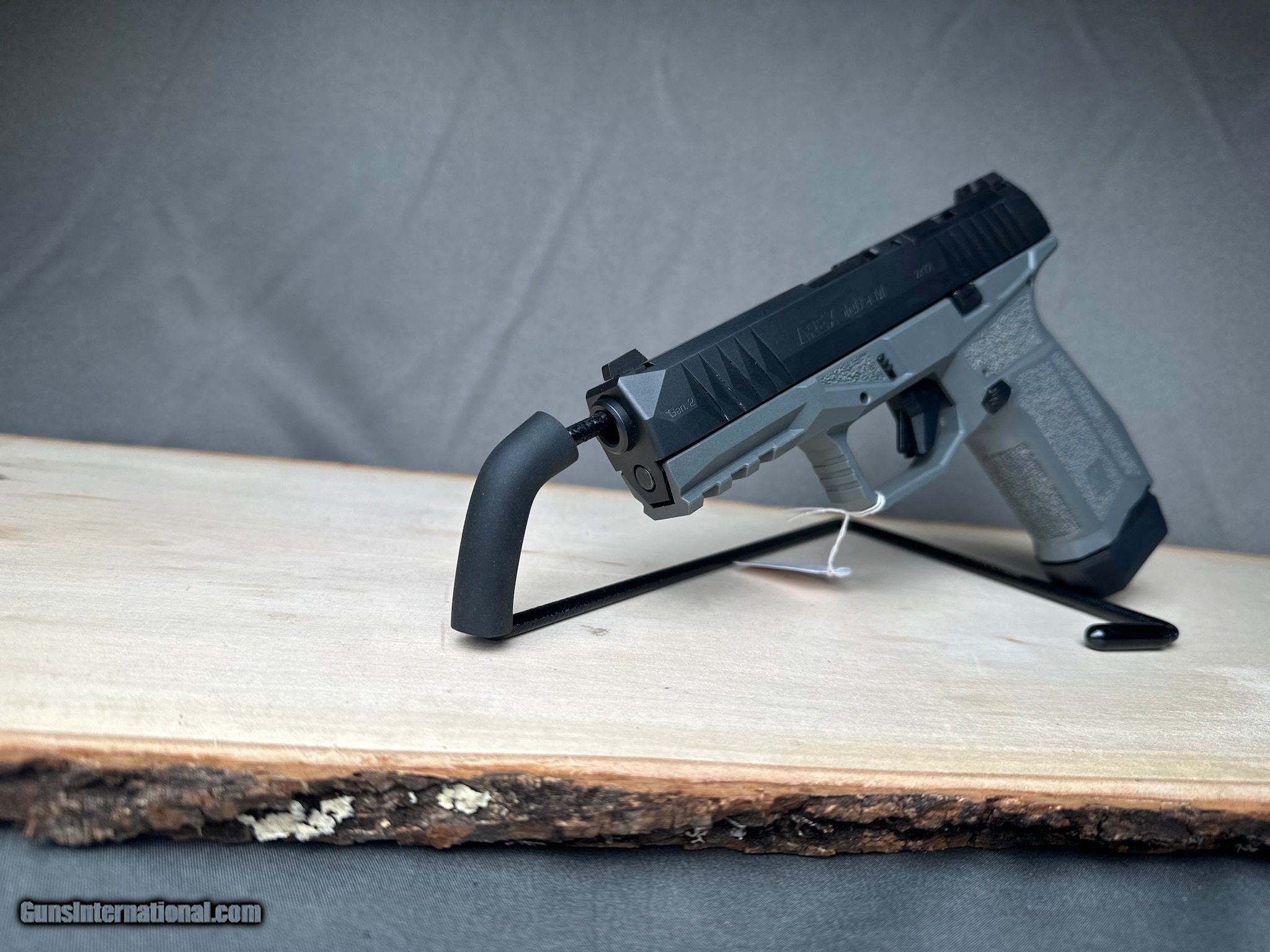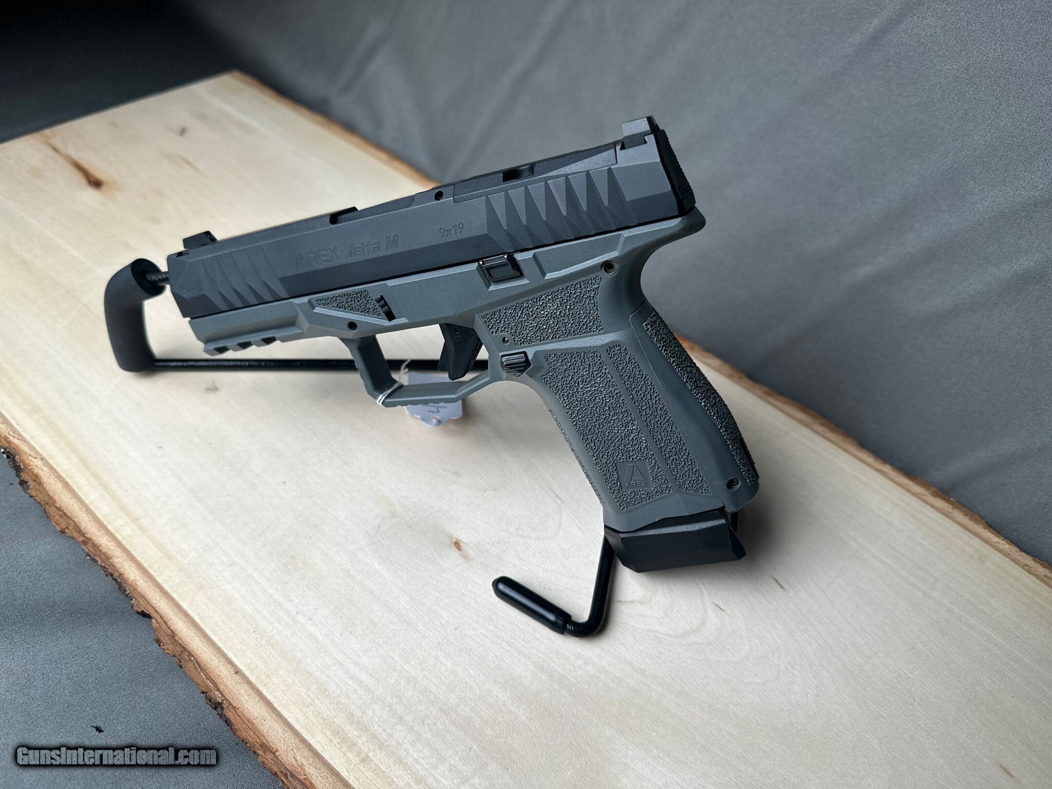 Description: Guns Listing ID: 1075191 The AREX Delta M GEN 2 9mm Optics Ready Pistol, takes all the great aspects of the original AREX Delta and adds to them. The result is a best-in-class defensive pistol that boasts extreme reliability and accuracy along with a competitive price. This model is also Optics Ready, look below for further information. Available in Black, FDE (Flat Dark Earth), and Gray. Features: Nitrocarburized stainless steel slide. Nitrocarburized steel parts. 4? Cold hammer forged barrel. Front and rear slide serrations Polymer frame. Striker fired, double action trigger system. Crisp, short reset trigger. Low profile ambidextrous magazine release. Low profile ambidextrous slide lock/release. Four interchangeable backstraps. Low profile steel sights. Rear sight can be used for one handed racking of the slide. Trigger safety. Striker indicator, and loaded chamber indicator. Easy takedown, without having to pull the trigger. One 15 round flush fit, and one 17 round extended magazine. Compact cleaning kit. SOLD Manufacturer: AREX Model: DELTA M Caliber Info: 9MM LUGER (9X19 PARA) Condition: Used - Non-Certified Barrels: 4 BARREL Finish: GREY |