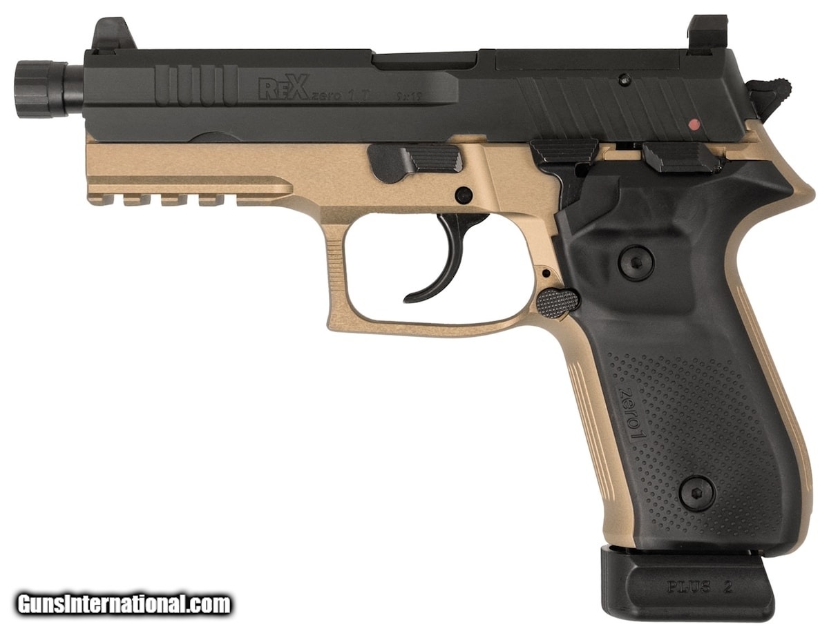 Description: Guns Listing ID: 350069 Arex's Rex Zero 1 pistol complies with strict military standards for reliability. Its frame is constructed of T7075 aluminum with steel locking block inserts and a hardcoat anodized finish. The nitrocarburized slide and cold hammer forged barrel are made from solid steel. The Rex Zero 1 has high profile white dot sights, ambidextrous safety, loaded chamber indicator, full length slide rails, and a large trigger guard for the use of gloves. Tactical models feature a threaded barrel with 1/2"x28 threads and include the ROR (Rex Optics Ready) system with four plates for optics attachment. This model has an FDE frame with black polymer grips and a a black slide. It has a 20-round magazine capacity. SOLD Manufacturer: AREX Model: REX ZERO 1 TACTICAL Caliber Info: 9MM LUGER (9X19 PARA) Condition: new Barrels: 4.9" barrel Finish: TAN |