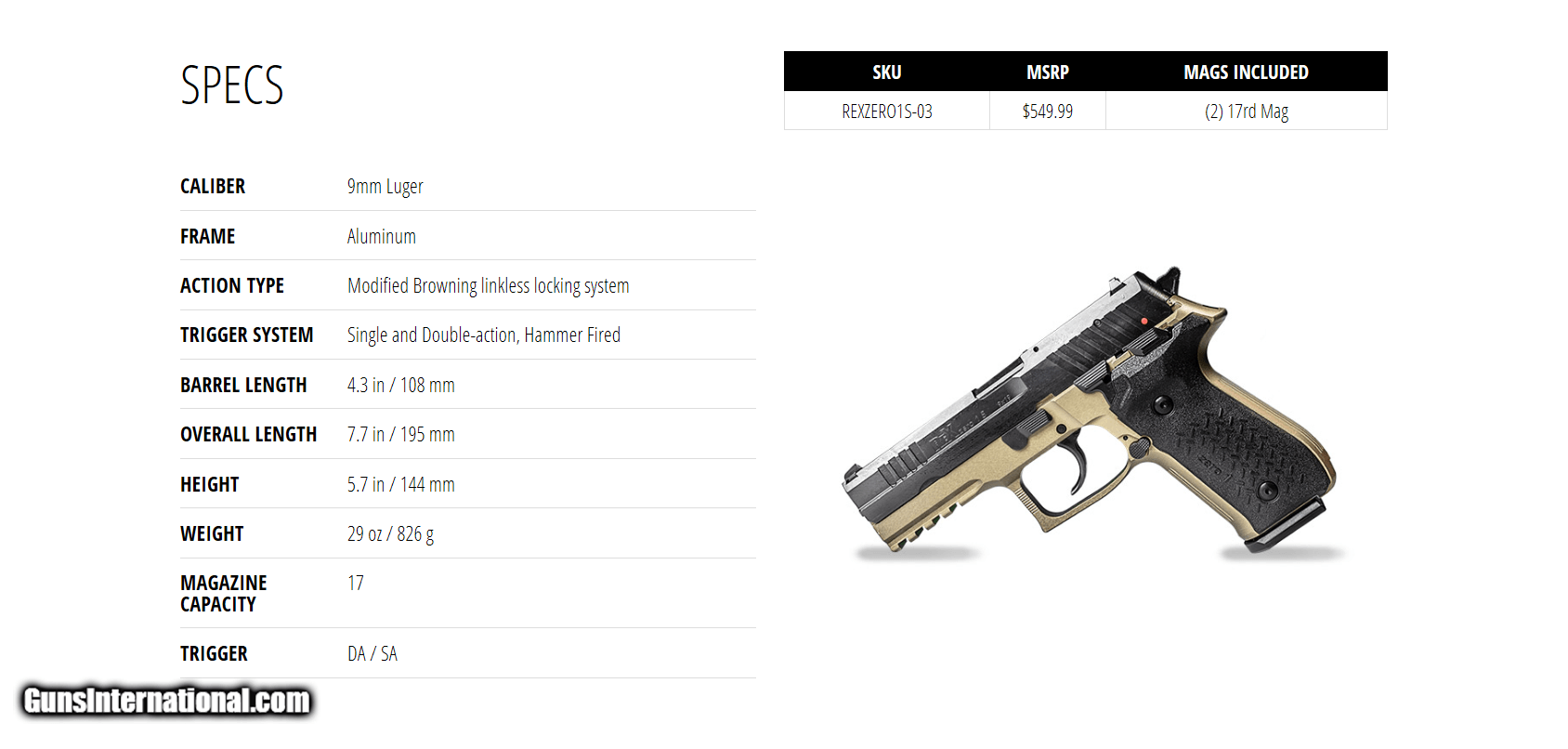 Description: Arex Rex Zero 1S 9mm. FDE. New in the case.. never fired. Gunsmith cleaned and lubed and service ready. Truglo Tritium Rex Zero 1 Pistol Night Sights, includes factory sights also. Priced to sell quickly, reducing my collection. Factory images are used for clarity only. (Price: $475.00) - (Shipping: $18.00) All firearms must be shipped to a FFL dealer in your state. It is the buyer's responsibility to insure that the dealer will accept the firearm(s). We encourage that the buyer contact the dealer before we transfer the gun to them for pick-up to insure that there are no problems with your transfer. We reserve the right, at our sole discretion, to refuse or cancel any order for any reason. It is your responsibility to be familiar with your current local gun laws BEFORE placing your order. Any Firearm that you have accepted is NON-RETURNABLE and NON-REFUNDABLE. In the case that a customer is declined in their ATF Form 4473, the customer is responsible for the shipping fee of returning the firearm and a 10% restocking fee will be assessed. We will then promptly refund your payment MINUS these charges. For Information on how to purchase .. Please Text your request to: 214-577-2988 We will respond promptly. Thank You for your interest. ATTENTION: California residents please check the California Roster of Handguns Certified for Sale to see if this gun is legal to purchase. ATTENTION: The following locations have magazine restrictions; please check for your local law and regulations before placing an order. California- No mags over 10rds without a high-cap mag permit. Connecticut- No mags without an FFL or State Permit, 10rd Limit. Hawaii- No handgun mags over 10rds. Massachusetts- No mags over 10rds. Maryland- No mags over 10rds. New Jersey- No mags over 15rds. New York State- No mags over 10rds. Chicago- No mags over 15rds. Cook County, IL- No mags over 10rds. Washington DC- No mags over 10rds. Colorado- No rifle or handgun mags over 15rds or shotgun mags over 8rds. SOLD Handgun Caliber: 9x19mm Parabellum (9mm Luger, 9x19mm NATO) Manufacturer: AREX Model: REX ZERO 1S Condition: Factory New Action: da/sa Sights: Truglo Tritium |