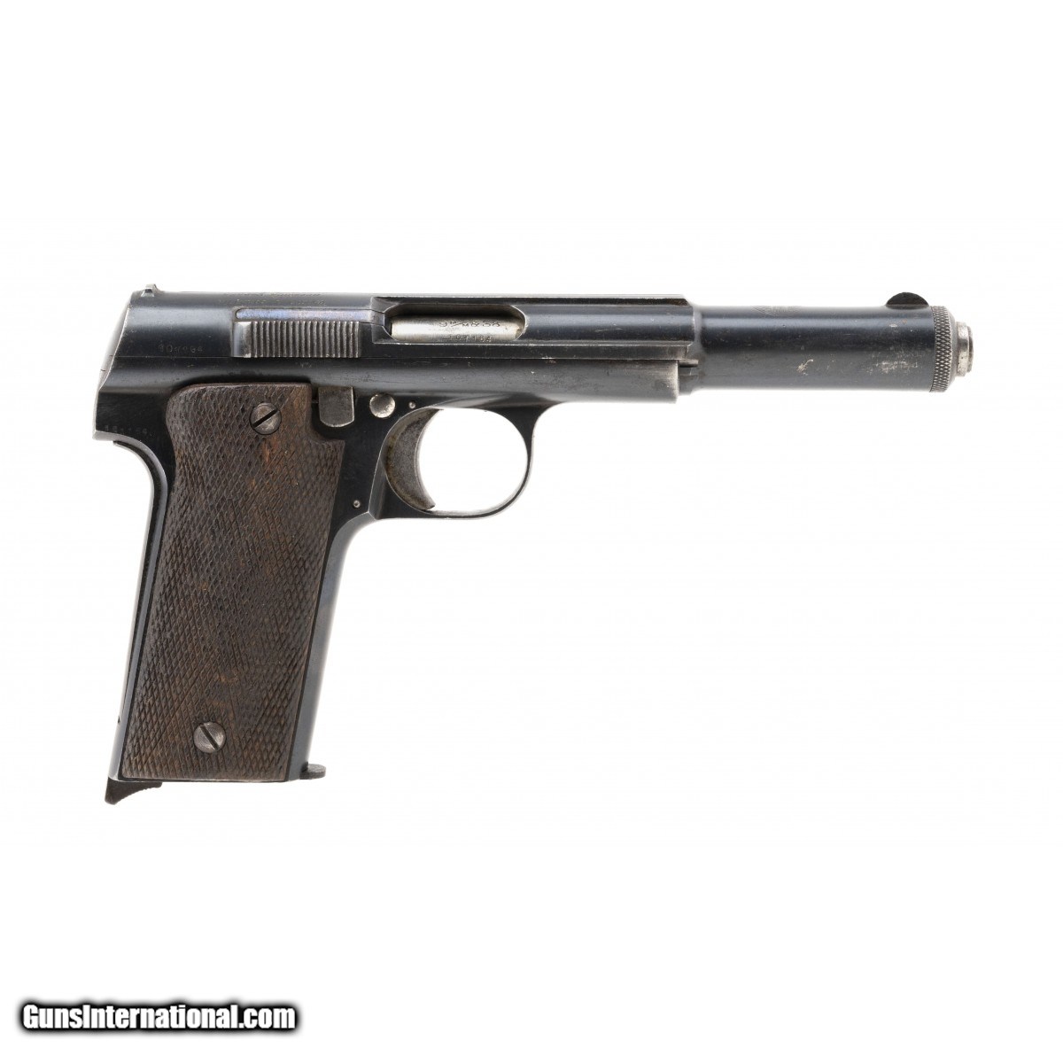 Various Spanish Armories bought 5,100 9mm Largo Astra Model 400 (1921) pistols in 1941 and 1942. The serial range is 99,031 to 104,150. This gun is serial number 101,164. The 5.75"" barrel has an excellent bore with bright, strong rifling. The top rear of the slide is marked UNCETA Y COMPANIA over GUERNICA ESPANA over PISTOLA DE 9M/M (38) over MODELO 1921(400). The Franco Nationalist Regime military flaming bomb with an I inside inspection mark is on the left forward corner of the trigger guard. The serial number matches on the frame, slide, and barrel. The gun retains approx. 90% of its blue military finish with the expected holster wear. The checkered wood grips are fine with no cracks or chips and light bruising. The action functions correctly. The military holster, with its strap, is very good with tight stitching and moderate wear. If you collect Spanish or European military automatic pistols, this Spanish military rig would fit right in.