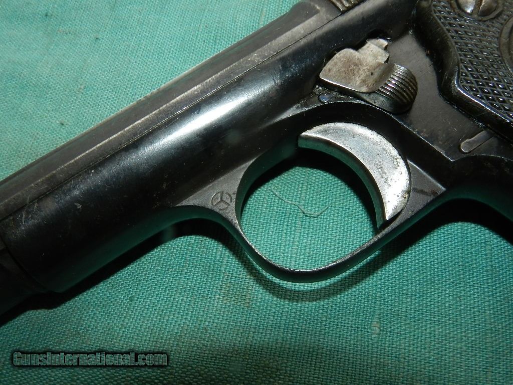 Description: Early Spanish Astra 400, also known as the model 1921 in 9mm Largo. Metal is good with mild wear and patina.Black hard rubber Grips are good with no.. Bore isgood with slight recent surface storage corrosion, with strong rifloing.Matching SN 78953 Comes with 1 original mag. C&R eligible.HAs a steering wheel stamped on the left side of trigger guard , possibly Spanish military transportation use. Comes with the military lanyard loop. Shipping may be higher than stated as shippers raise their prices twice year without notice! When buying a gun always have it examined by a competent gunsmith before shooting. To buy a gun from me you must get a direct email for me, with details, and shipping cost. We don’t have a web site .I prefer money orders or a check. Item ships when funds come in. If you can only pay with a card let me know. I try to keep guns affordable, which means I make less money than most dealers. You won’t get altitude sickness, or nose bleed, with my prices! I consistently have the best selection of older guns If you attempt to buy, you must still contact us for details . Best to email to buy. Sometimes a local person can stop buy and purchase before the gun is removed. Sometimes not home to get calls. Some guns are required shipment to a gun dealer near you for a transfer to you when it arrives. Otherwise many older or black powder guns ship to your door. With the widest selection of older guns at great prices, We don’t have a store, and sell on the internet only. I’m easy to get along with. Thank You. SOLD Curio/Relic: Yes |