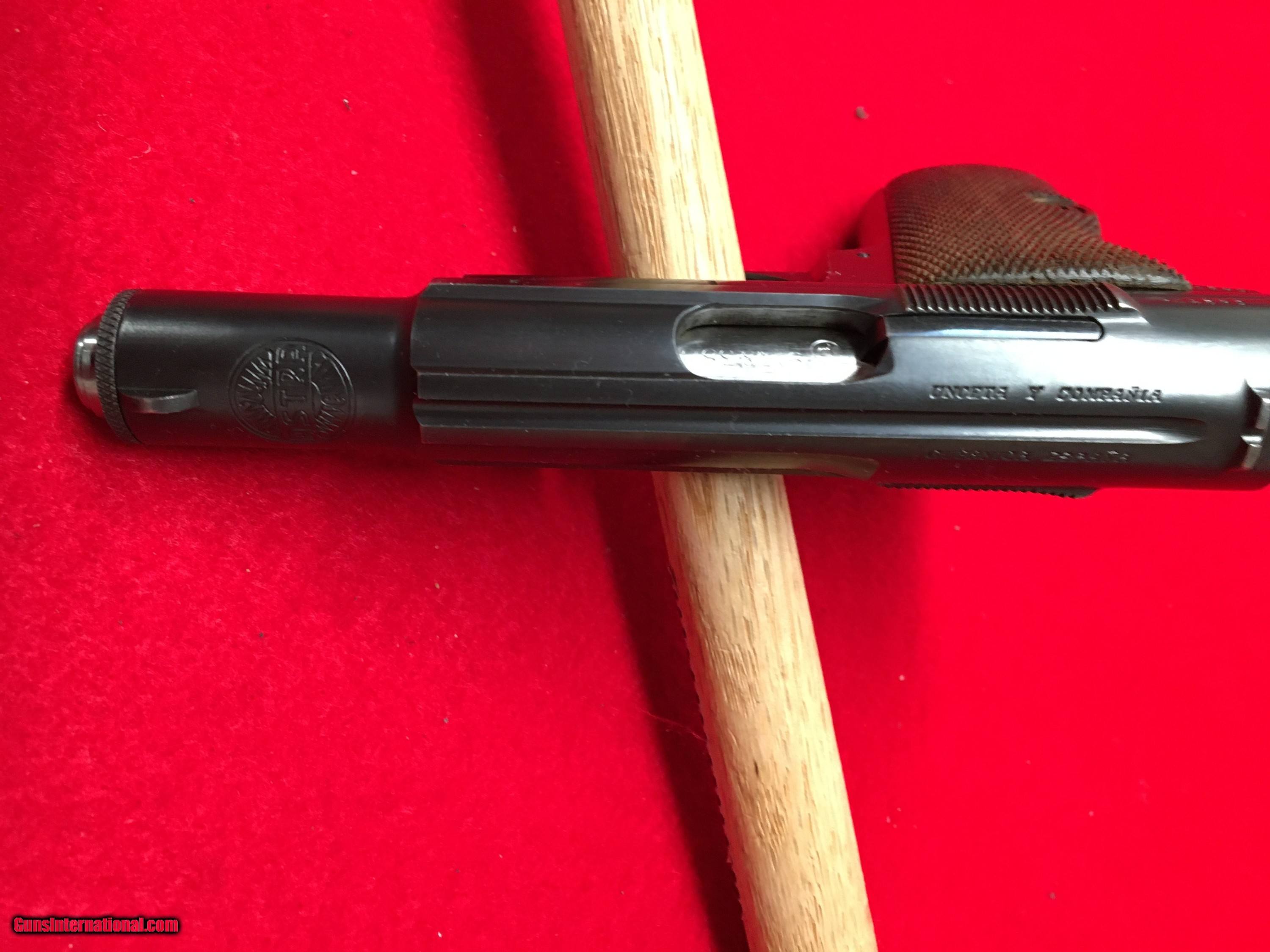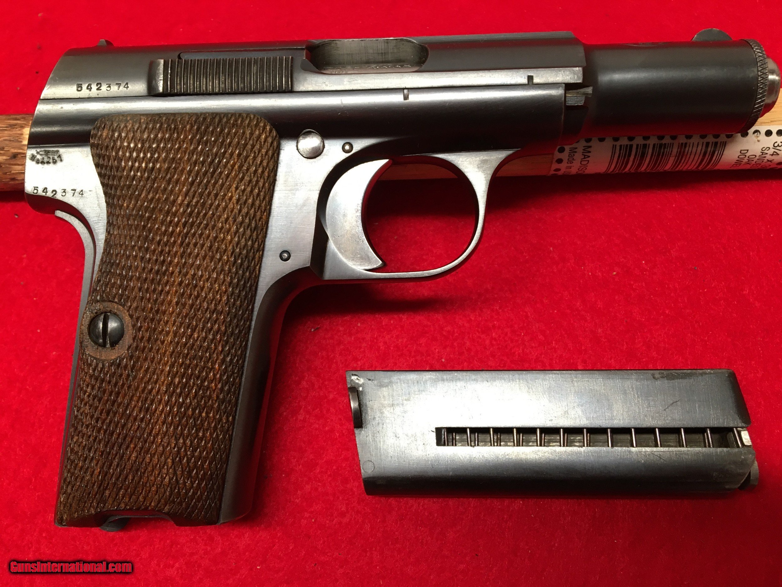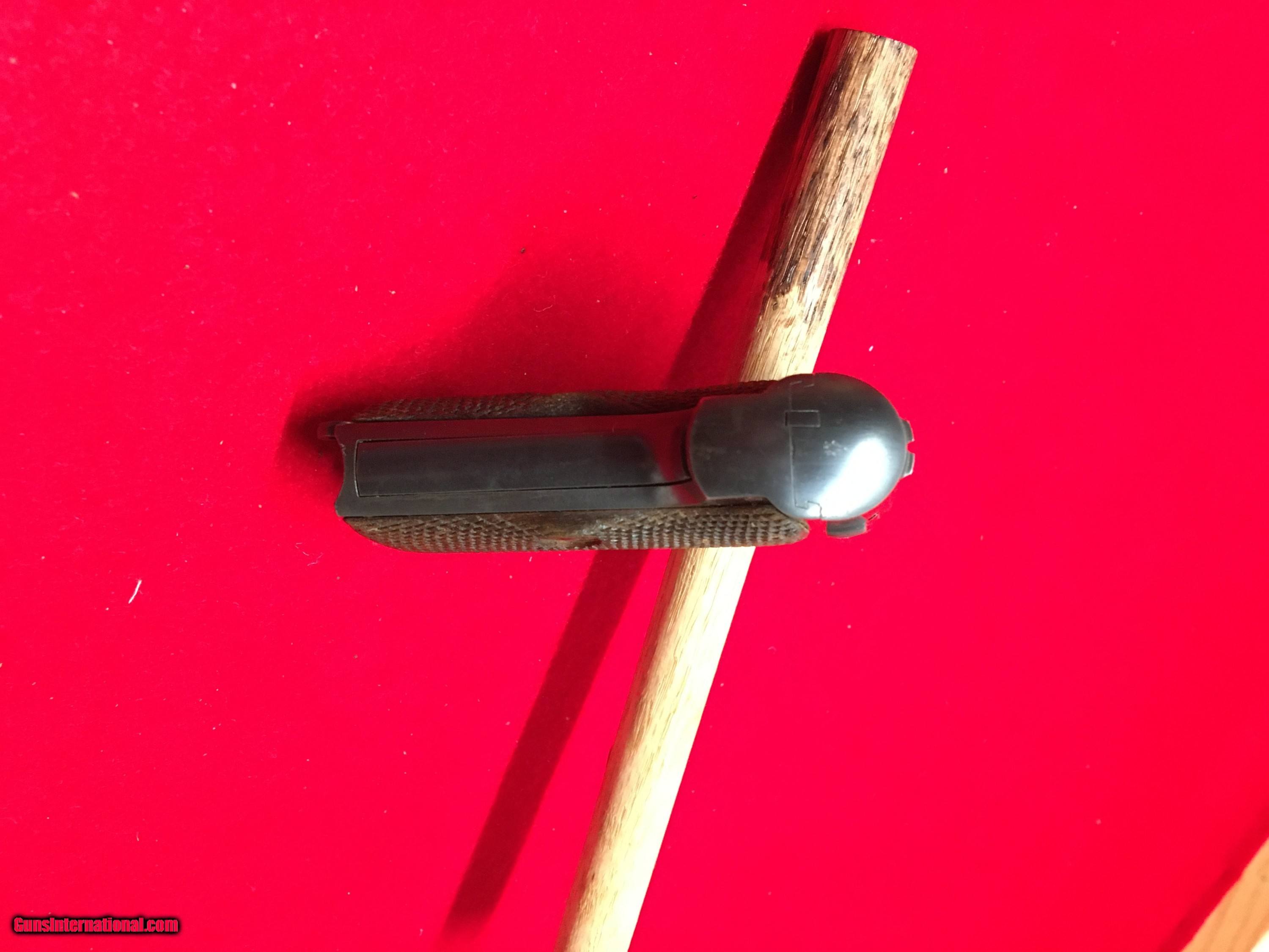 Description: Astra Model 300 in 9mm Kurz (380). SN 542374 German Army Acceptance Stamp E/WaA251 located on right grip tang. Based on Still's AXIS Pistols this gun was delivered to the Nazi's 4/30/1942. Pistol appears unfired with an excellent bore. Only has small mark on grip strap otherwise 100%. Sold: AS IS. Payment: USPS Money Order, Certified Check, Personal Check. Buyer pays shipping, handling and insurance costs; flat rate $35 SOLD Manufacturer: Astra Model: 300 Serial Number: 542374 |