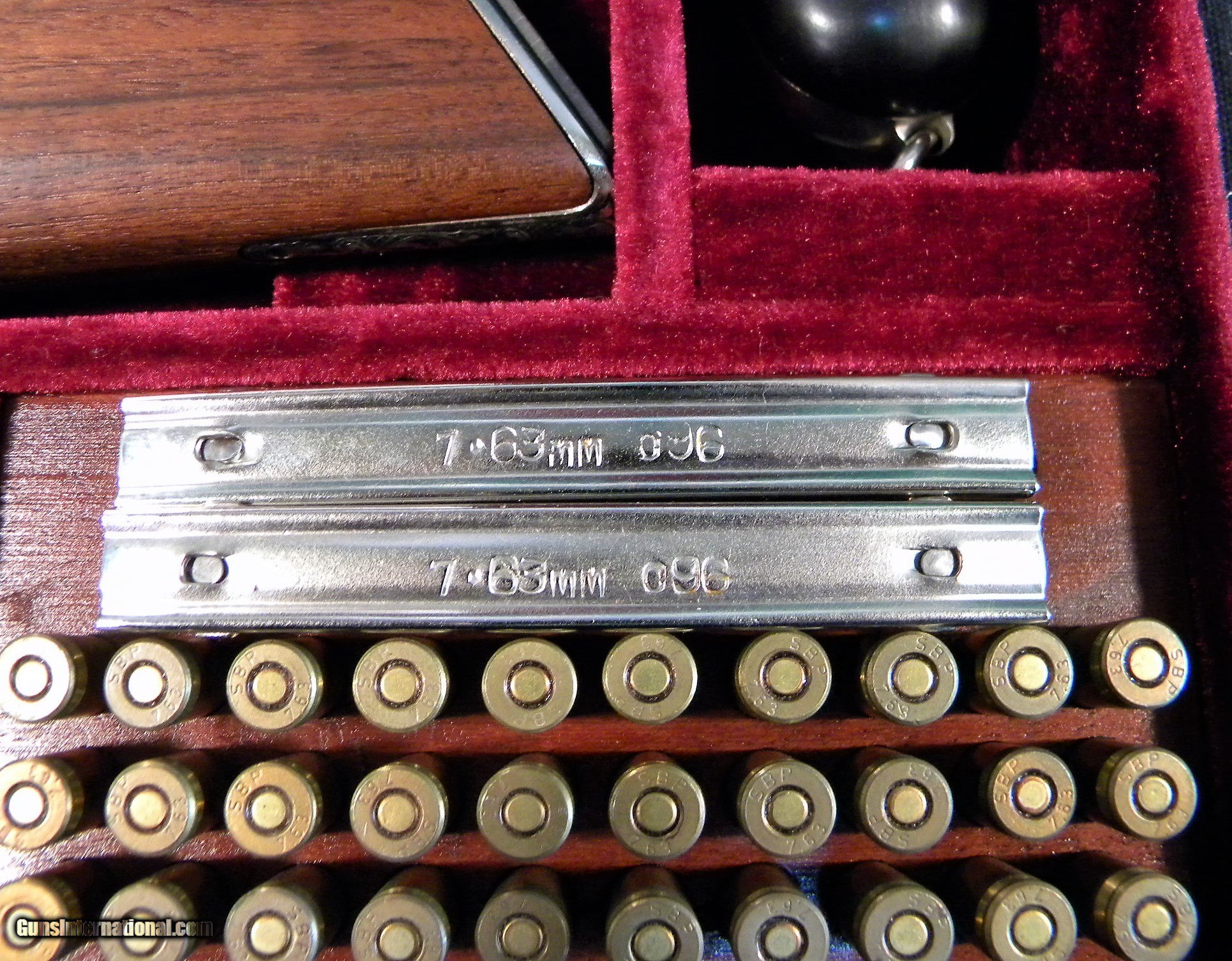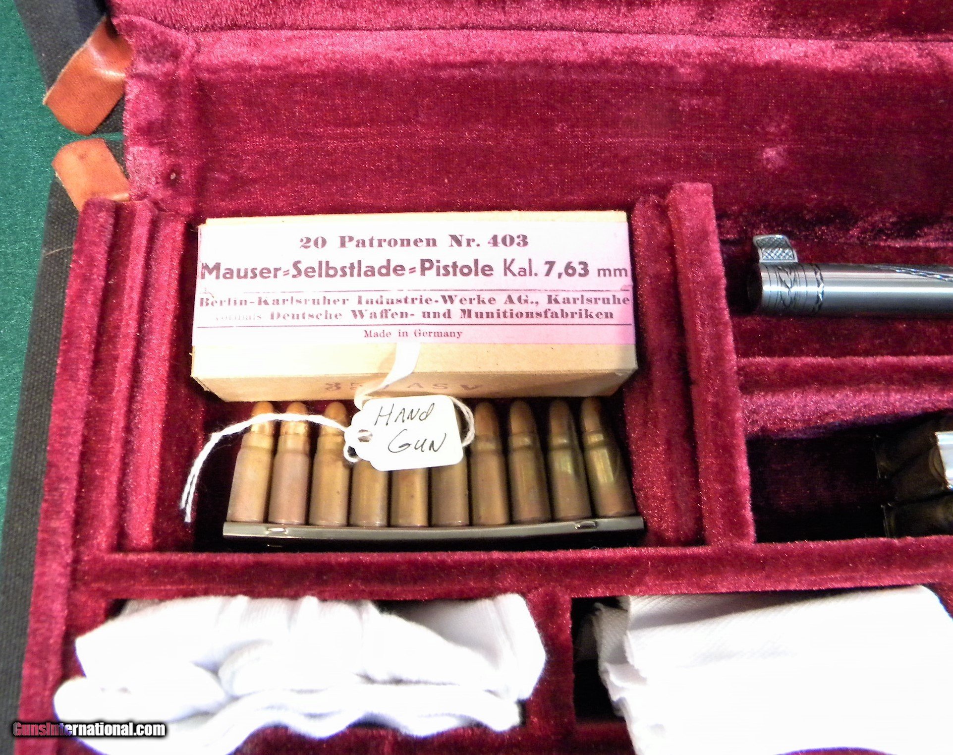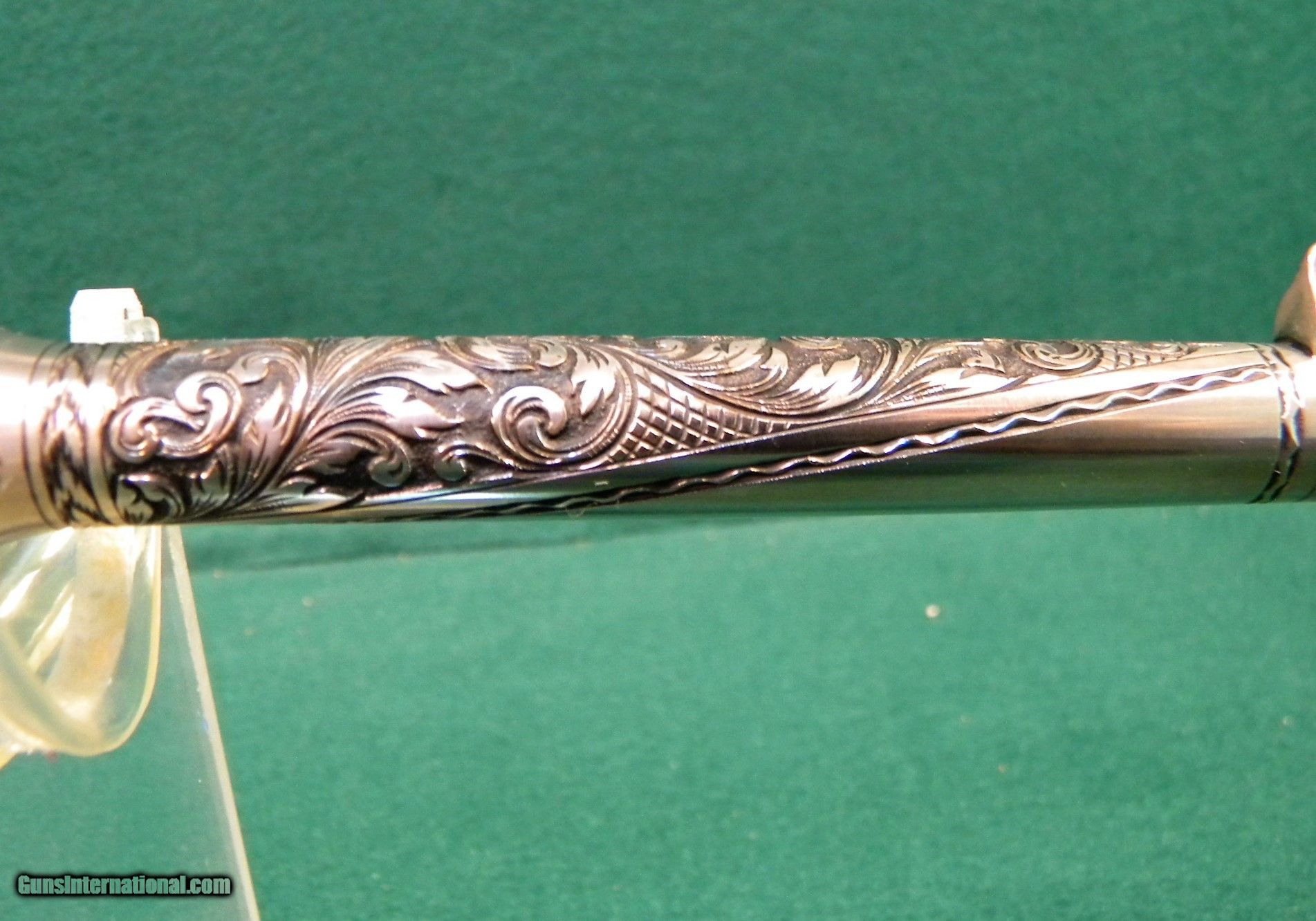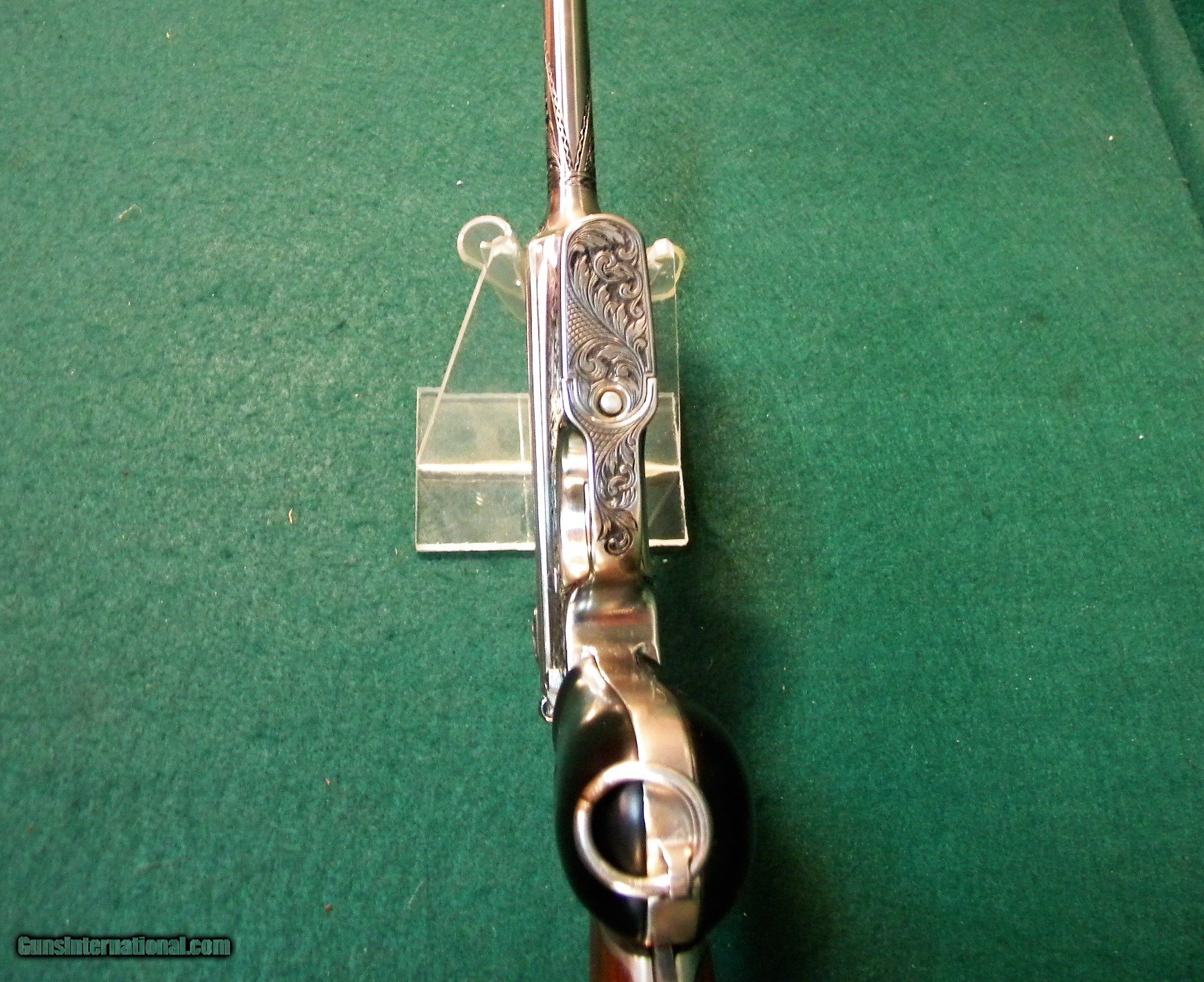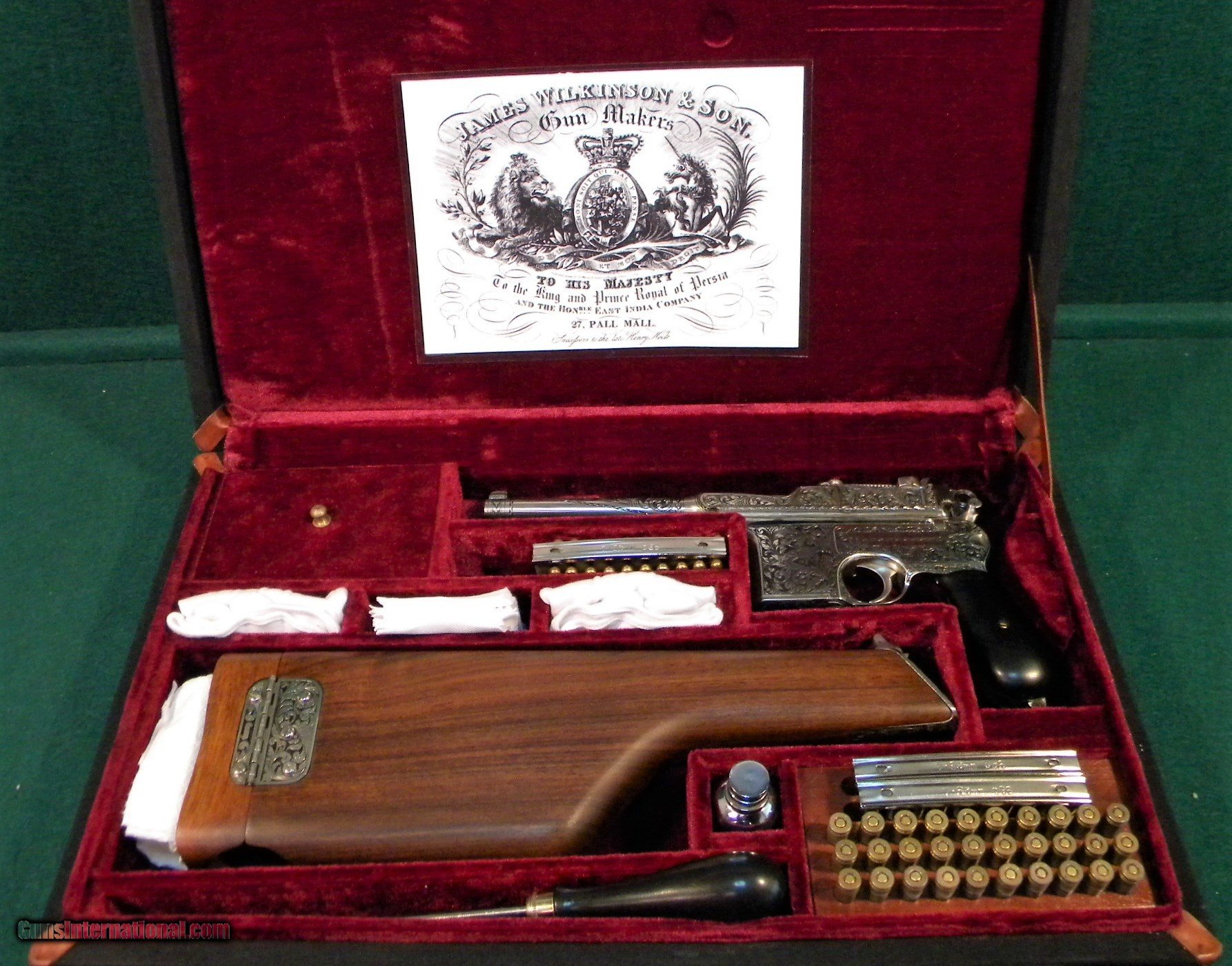 Description: Engraved Astra 900 by the late Master Engraver, Ben Shostle. This pistol has 100% hand engraved deep relief coverage with matching wood shoulder stock. The pistol has ebony grips with an ebony handled cleaning rod, nickel oil bottle, ammo and "James Wilkinson & Son" custom display case. Consignee advises that he bought this pistol rig in 1985 from Ben Shostle, at his shop in Muncie, Indiana. A truly one of a kind work of art!! Buyer pays exact shipping costs as insurance needs to be calculated at time of sale. NOTE: this item will remain for sale unless sold from our in house inventory, at which time this posting will be deleted. SOLD Manufacturer: Astra Model: 900 Caliber Info: .30 ACP Condition: Used |