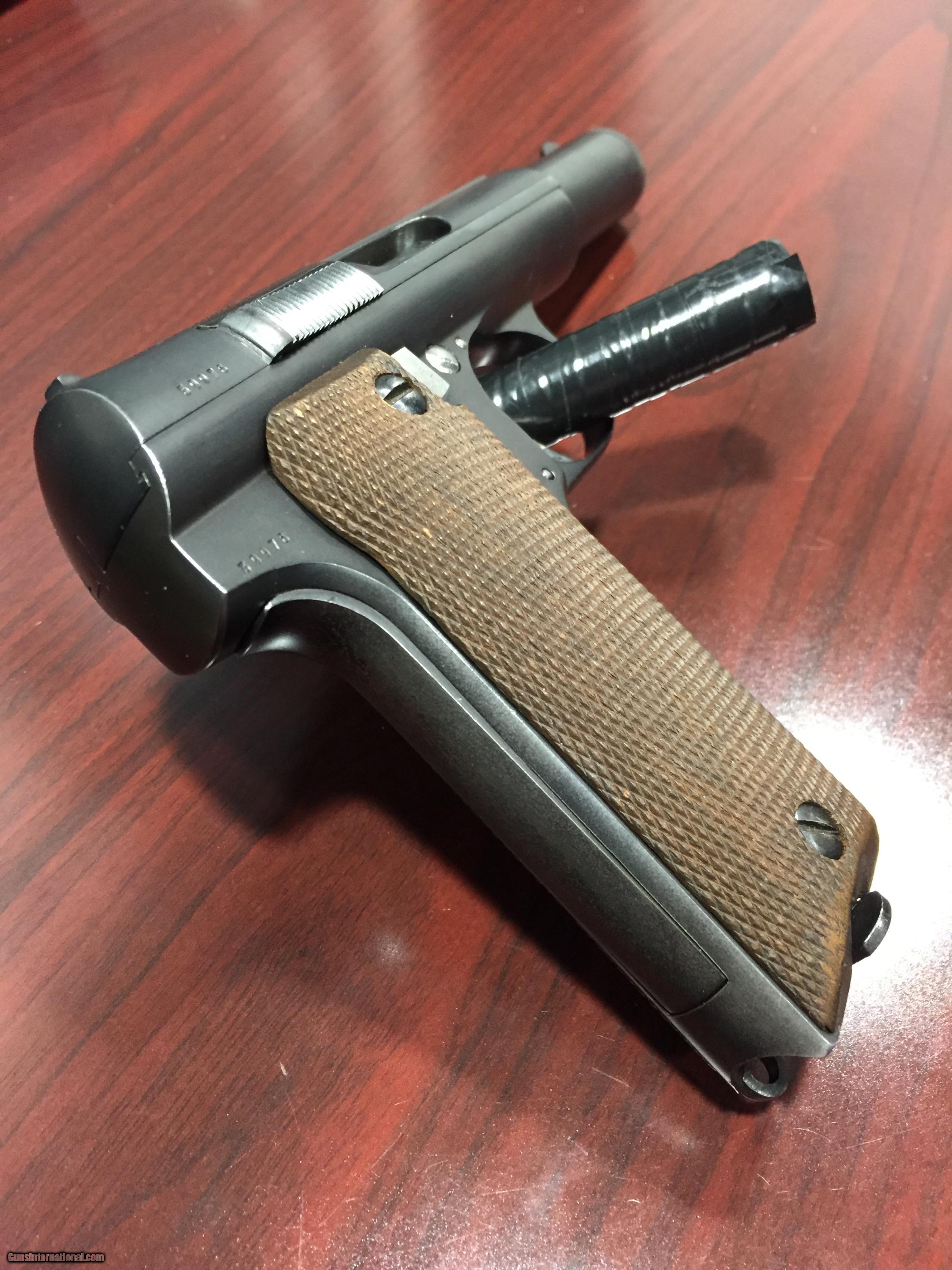 Description: This is an all original Astra Model 600 9MM. This gun is in great shape for its age. It comes with one extra magazine and a black magazine/pistol holster. This style gun was made for the Nazi army and went to the German police at the end of the war. Priced at $499.00 +$25.00 Shipping Fee SOLD |