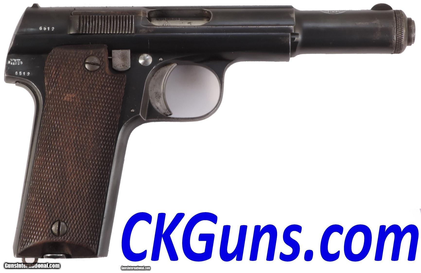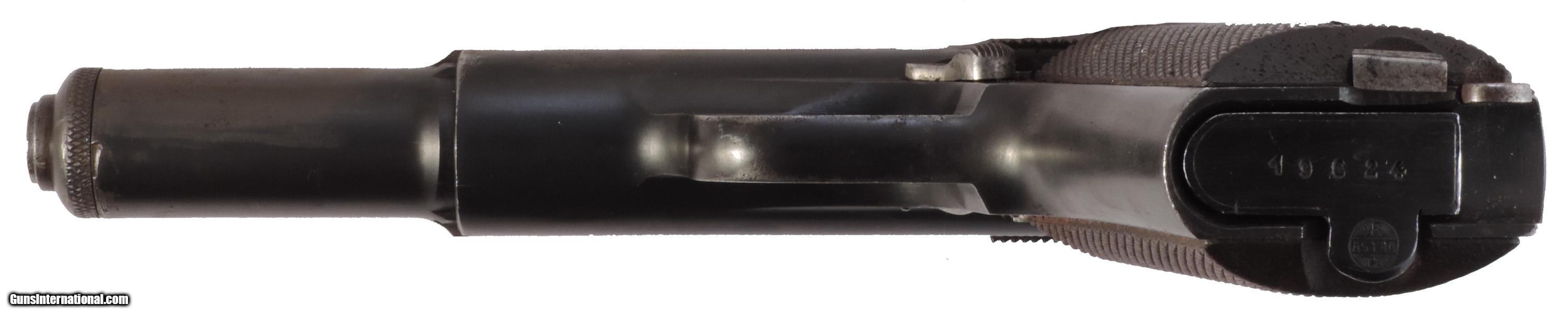 Description: Inv.6350 Astra (Nazi) Mdl. 600, Cal. 9mm, Ser.65XX. (Nazi Contract). Mdl 600, Cal.9mm, Ser 44XX. During the second half of WWII the Nazis gave two contracts to the Astra company of Spain for shipments of Model 600 guns, the first of which was for 10,000 units. This shipment was delivered to the German naval base in Cherbourg, France while the second shipment was never delivered. This gun is serial numbered in the first half of the first shipment. It displays the proper serial number and the correct Nazi Waffenamt. On the rear right side of the frame it is stamped Eagle/WaAD20. The condition of this gun is rather good. The original factory finish is an honest 90-95%. There is only the very slight sharp edge silvering and three very small areas of pinpricks. One on the left side of the slide and one below it on the frame. The right front side of the slide also has a tiny patch. All parts match. The trigger, magazine release and safety lever assembly are in the white and are is easily 98-99% original finish. The telltale grips straps have not even started to gray. The hardwood checkered grips are pristine, the only possible fault is a tiny surface ding in the middle of the right panel. The grip screws show no evidence of any use and are in new condition. The bolt face, feed ramp and slide rails show very little use. The bore like the rest of the gun lovely. The rifling is razor sharp, mirror bright without even a hint of frost. The gun comes with one correct Astra stamped magazine. There are very few of these still around and trying to find a better one would be rather expensive and time consuming. It would be great in a collection and super on the firing line........$1195 To purchase this firearm or if you want to request more information contact us at: Email ckgunsymail Phone 201-512-0002 Cell 201-575-6838 FAX 201-215-4759 We accept most major credit cards. Prices shown are Discounted 3% for Cash or Check. The buyer must be familiar with all the laws governing the purchase and the ownership of firearms in their own city and state. The Yankee Armorer, Inc is not responsible for any failure to comply with or observe these laws. The Yankee Armorer, Inc will only ship after full payment and receipt of all required documents. Shipping: Add $35.00 for handguns, $45.00 for long guns. New Jersey buyers are subject to a 7% sales tax. The Yankee Armorer, Inc offers a 3 day inspection period with full refund upon return of intact firearm and in the original condition. The Yankee Armorer, Inc offers a no interest lay away program - 25% down; 25% in 30 days; 25% in 60 days; and full payment in 90 days. Any violation of this policy is subject to restocking and forfeiture of all payments. Any variation from this policy must be agreed to in advance. Unshipped Cancelled sales are subject to a 20% restocking fee. Be advised that all firearms sold by The Yankee Armorer, Inc. or the Gun Exchange, LLC (SELLER) are sold as collector’s items. They have not been fired or tested for safety and must be examined by a license gunsmith prior to use. By purchasing any item from the (SELLER), you are agreeing to hold the (SELLER) free from any damages or lawsuits of any nature. Any item left for transfer or storage will be charged to $25.00 per month, per item from the day of its receipt. Any variation from this policy must be agreed to in advance. Store hours 10:00 am to 5:00 pm Tuesday -Saturday. It's always best to call for appointment. Store 201-512-0002, cell 201-575-6838. SOLD Curio/Relic: Yes Manufacturer: Astra Model: 600 Serial Number: 6512 Caliber Info: 9mm |