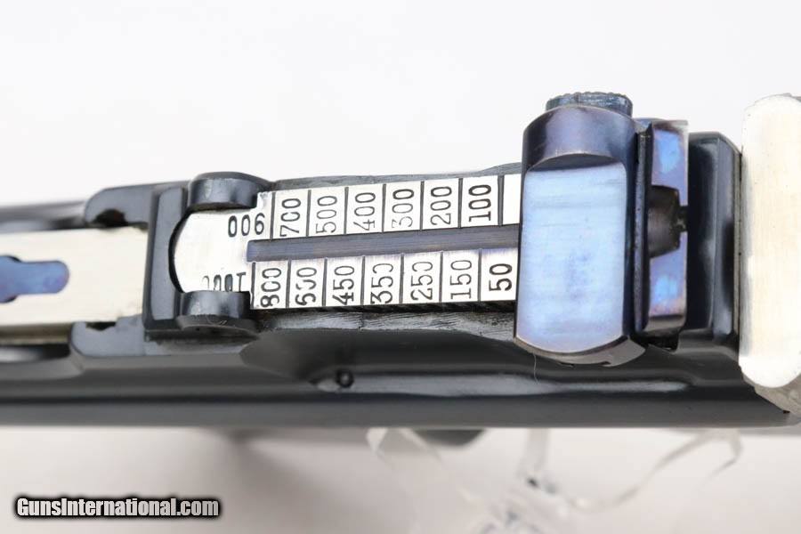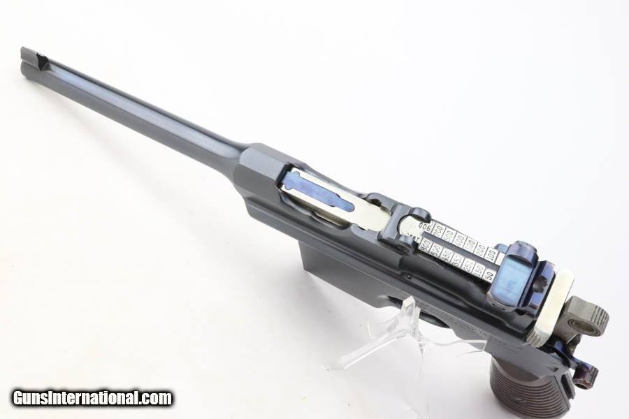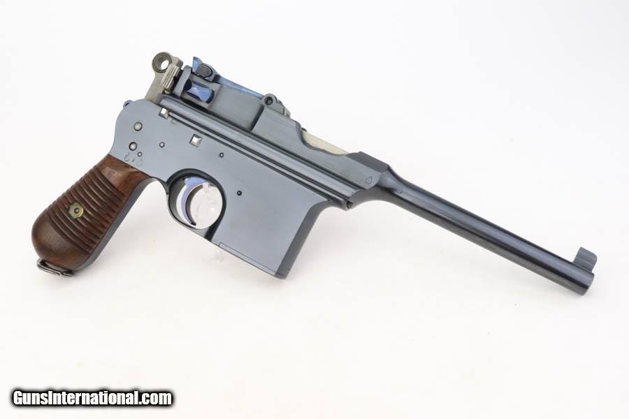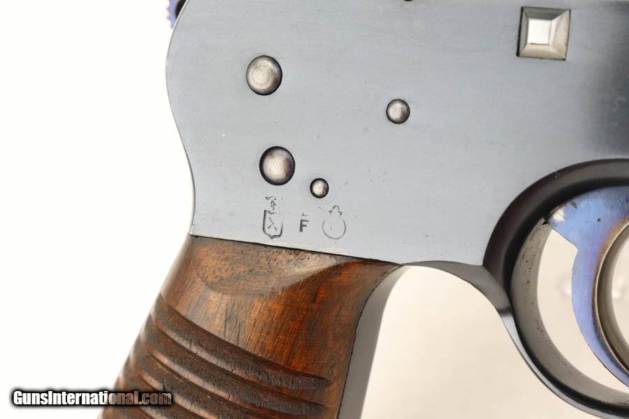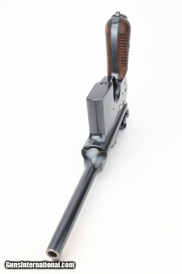 Description: This is a gorgeous example of a fairly rare Astra Model 900 that was manufactured sometime in the early to mid 1930's. The Astra 900 was a pistol developed to take advantage of a large Chinese demand for semiauto pistols with shoulder stocks, following the massive sales of the Mauser C96 in that country. There was a loophole in the international treaty accords that stocked pistols were not considered military arms, so civil war in China had a huge market for arms that this variant was able to meet. There were only ~21,000 of these pistols produced. This one is matching and has a pre-Nazi serial number. It shows a beautiful deep blue finish with virtually no finish loss to speak of. Really nice fire-bluing on the small parts. Fitted with minty wood grips. Mint bore. Curio/Relic: Yes Handgun Caliber: 7.63x25mm Mauser (30 Mauser) Price: $4,995.00 Contact Seller |