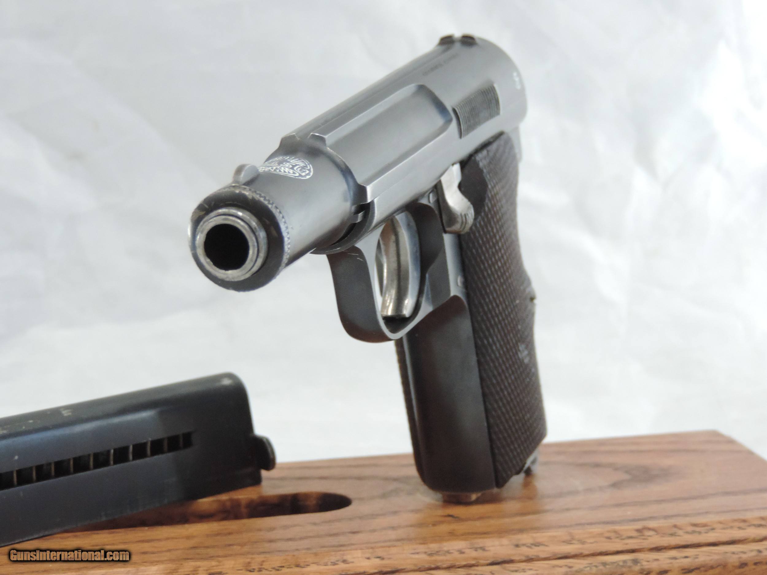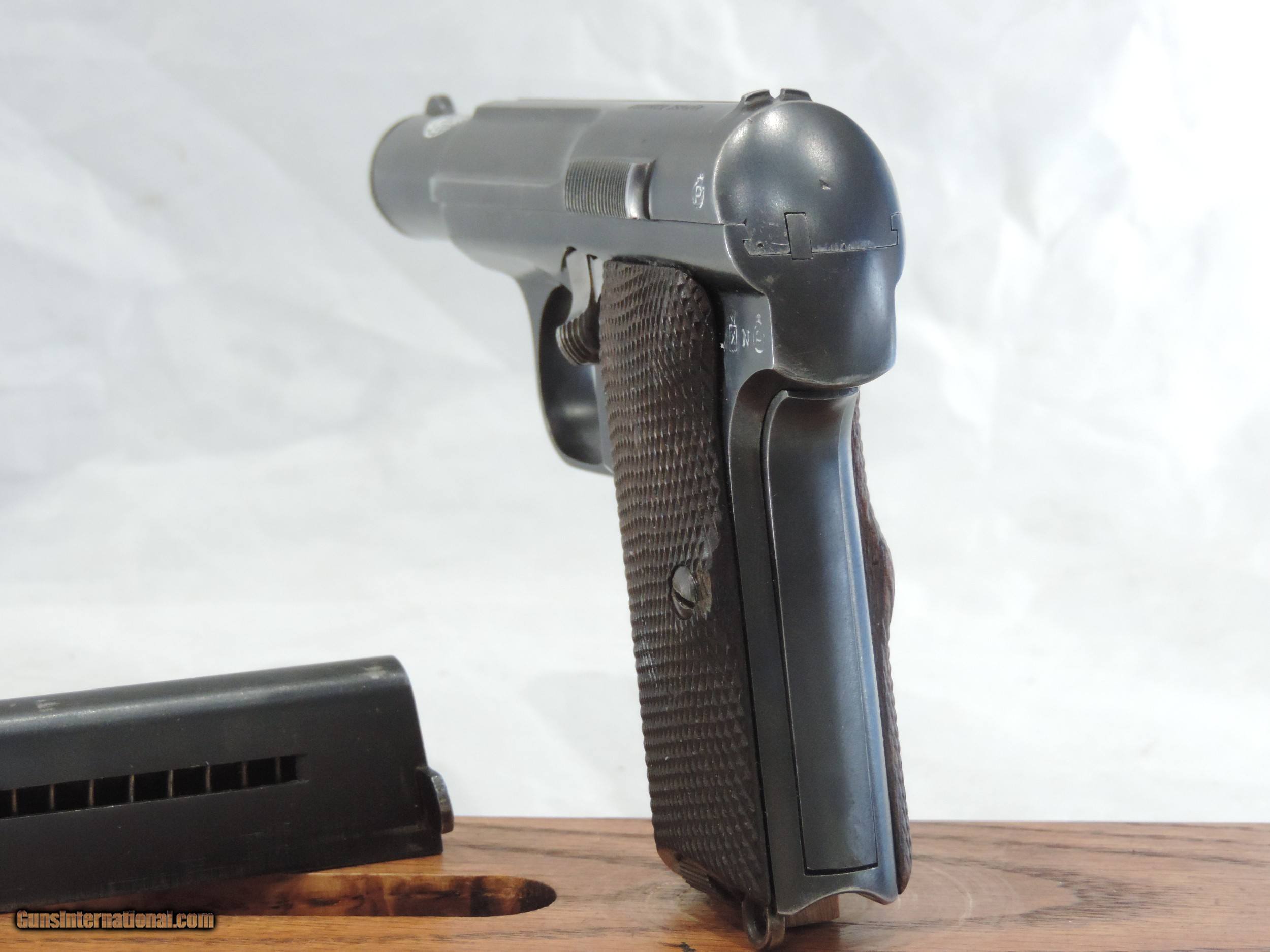 Description: INV. 10159 PRISTINE NAZI ASTRA 300 CAL. .380 SER. 553137. THIS IS A 1ST. NAZI CONTRACT "400" AND IS SURELY PRISTINE. RETAINING 99+% OF THE ORIGINAL FACTORY FINISH. THE LITTLE LOSS THERE IS, IS FROM SOME VERY SLIGHT SHARP EDGE SILVERING. THERE ARE NO RUST PATCHES, RUB MARKS OR SCRATCHES. THE GRIP STRAPS HAVE NOT GRAYED. ALL NUMBERS MATCH AND THE FRAME HAS THE PROPER NAZI WAFFENAMT**. THE CHECKERED GRIP PANELS ARE PERFECT, NOT A CHIP OR A SPLIT ANYWHERE. THE SCREW HEADS ALSO PERFECT. THE SLIDE RAILS, FEED RAMP AND BOLT FACE SHOW LITTLE IF ANY USE. THE BORE IS PRISTINE LIKE THE REST OF THE GUN, LASER BRIGHT, WITH RAZOR SHARP RIFLING AND NOT A WHISP OF FROST. IT COMES WITH ONE CORRECT 300 MAGAZINE. THIS PISTOL WOULD SATISFIED THE MOST PICKY COLLECTOR AND WOULD BE REAL FUN AT THE CAMP. INVESTMENT PRICED AT..... $1595.*** To purchase this firearm or if you want to request more information contact us at: Email ckguns[at]ymail[dot]com Phone 201-512-0002 Cell 201-575-6838 FAX 201-215-4759 We accept most major credit cards. Prices shown are Discounted 3% for Cash or Check. The buyer must be familiar with all the laws governing the purchase and the ownership of firearms in their own city and state. The Yankee Armorer, Inc is not responsible for any failure to comply with or observe these laws. The Yankee Armorer, Inc will only ship after full payment and receipt of all required documents. Shipping: Add $35.00 for handguns, $45.00 for long guns. New Jersey buyers are subject to a 7% sales tax. The Yankee Armorer, Inc offers a 3 day inspection period with full refund upon return of intact firearm and in the original condition. The Yankee Armorer, Inc offers a no interest lay away program - 25% down; 25% in 30 days; 25% in 60 days; and full payment in 90 days. Any violation of this policy is subject to restocking and forfeiture of all payments. Any variation from this policy must be agreed to in advance. Unshipped Cancelled sales are subject to a 20% restocking fee. Be advised that all firearms sold by The Yankee Armorer, Inc. or the Gun Exchange, LLC (SELLER) are sold as collector’s items. They have not been fired or tested for safety and must be examined by a license gunsmith prior to use. By purchasing any item from the (SELLER), you are agreeing to hold the (SELLER) free from any damages or lawsuits of any nature. Any item left for transfer or storage will be charged to $25.00 per month, per item from the day of its receipt. Any variation from this policy must be agreed to in advance. Store hours 10:00 am to 5:00 pm Tuesday -Saturday. It's always best to call for appointment. Store 201-512-0002, cell 201-575-6838. SOLD Curio/Relic: Yes |