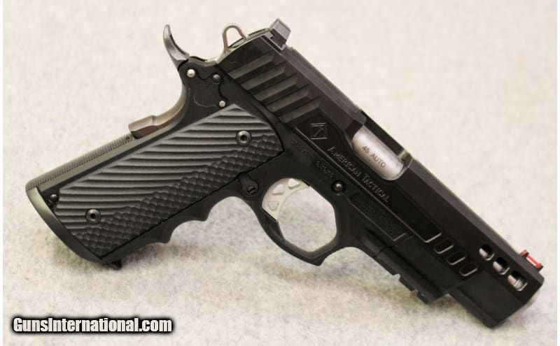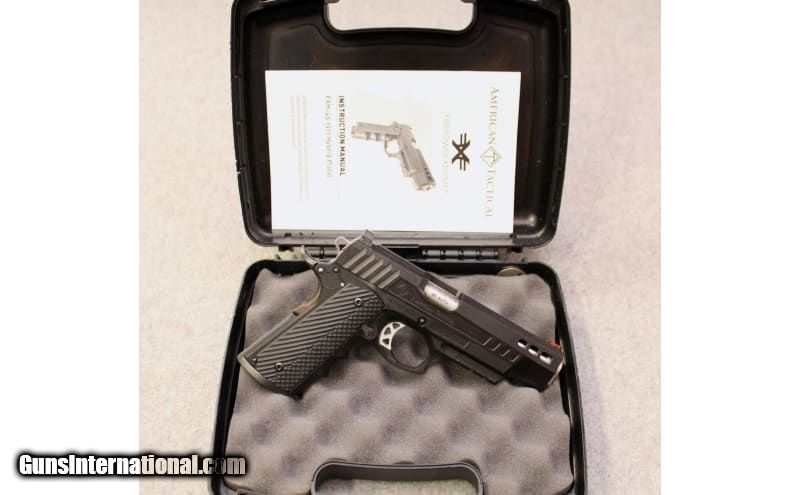Description: This American Tactical FXH-45 chambered in .45 Auto features, polymer frame, slide cuts, checkered mainspring housing, extended beavertail, fiber optic front sight, optic cut, flared mag well, and an accessory rail. .45 Auto SOLD Metal Condition: Excellent Bore Condition: Bright Barrels: 5 inch Weight: 2.0lbs. Item Location: Hoffman Estates, IL |