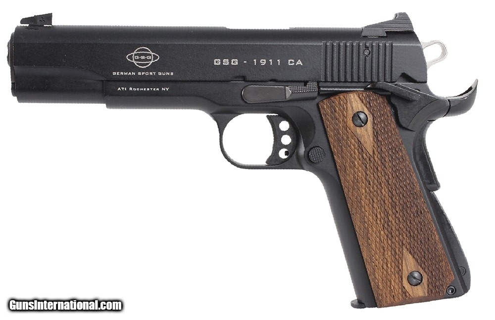 Description: Guns Listing ID: 1194 The ATI GSG 1911 is a semi-automatic pistol zinc-alloy framed pistol chambered in 22 LR. A 5 barrel is adorned with fixed three dot sights while both the trigger and the hammer are skeletonized. Double diamond checkered walnut grips ensure steady grasp with every plinking and target practice shot you take with the GSG 1911. SOLD Manufacturer: AMERICAN TACTICAL IMPORTS Model: GSG 1911 Caliber Info: .22 LR Condition: new Barrels: 5" BARREL |