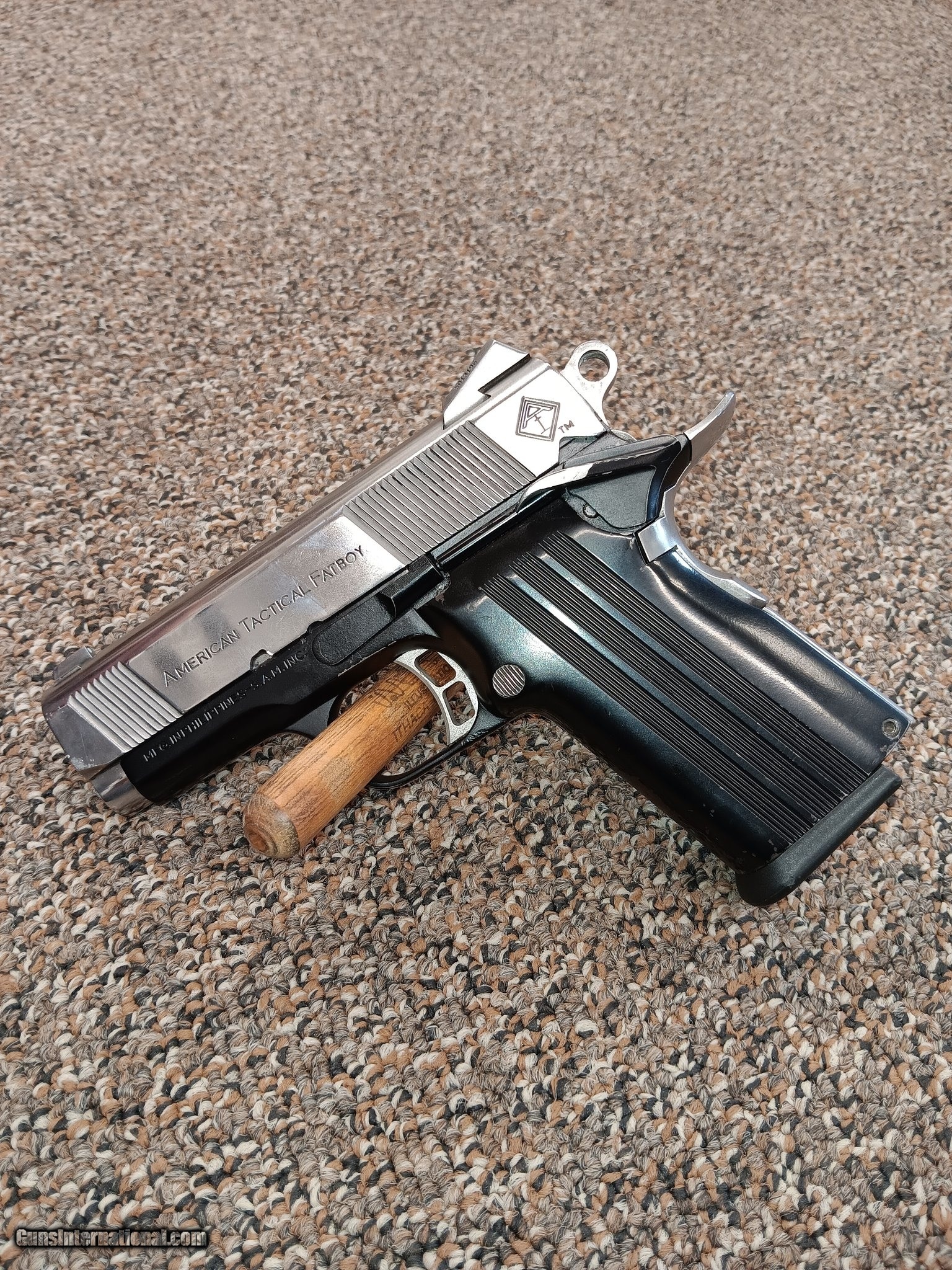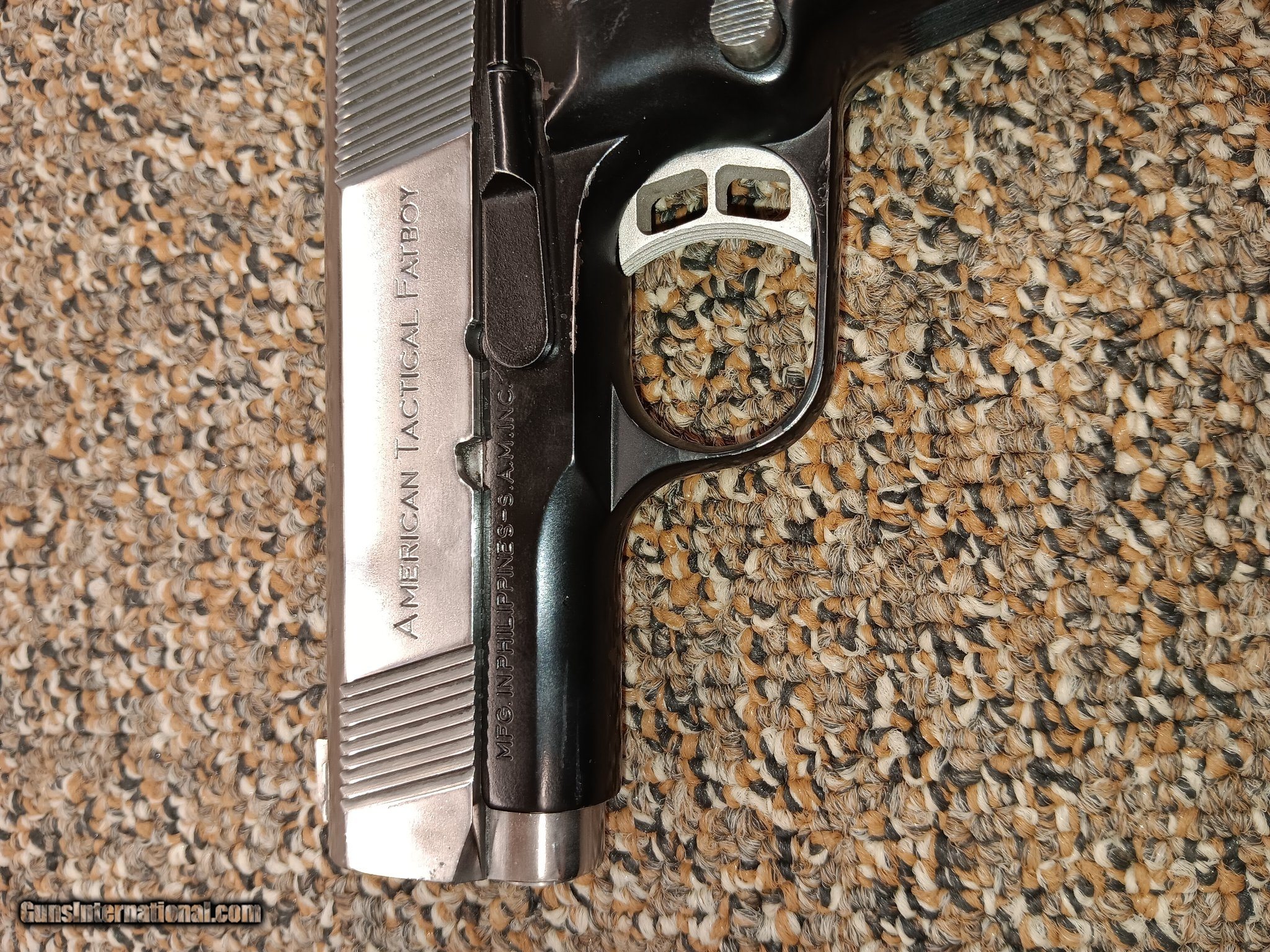 Description: Guns Listing ID: 1313445 ATI FatBoy, 45ACP, 3\", Chrome/Nickel Slide and black frame. Gun is in good condition considering age. Verified operational. Includes two magazines and box as depicted. SOLD Manufacturer: ATI Model: FATBOY 45ACP 3 Caliber Info: .45 ACP Condition: Used - Non-Certified Barrels: 3 BARREL Finish: CHROME AND BLACK |