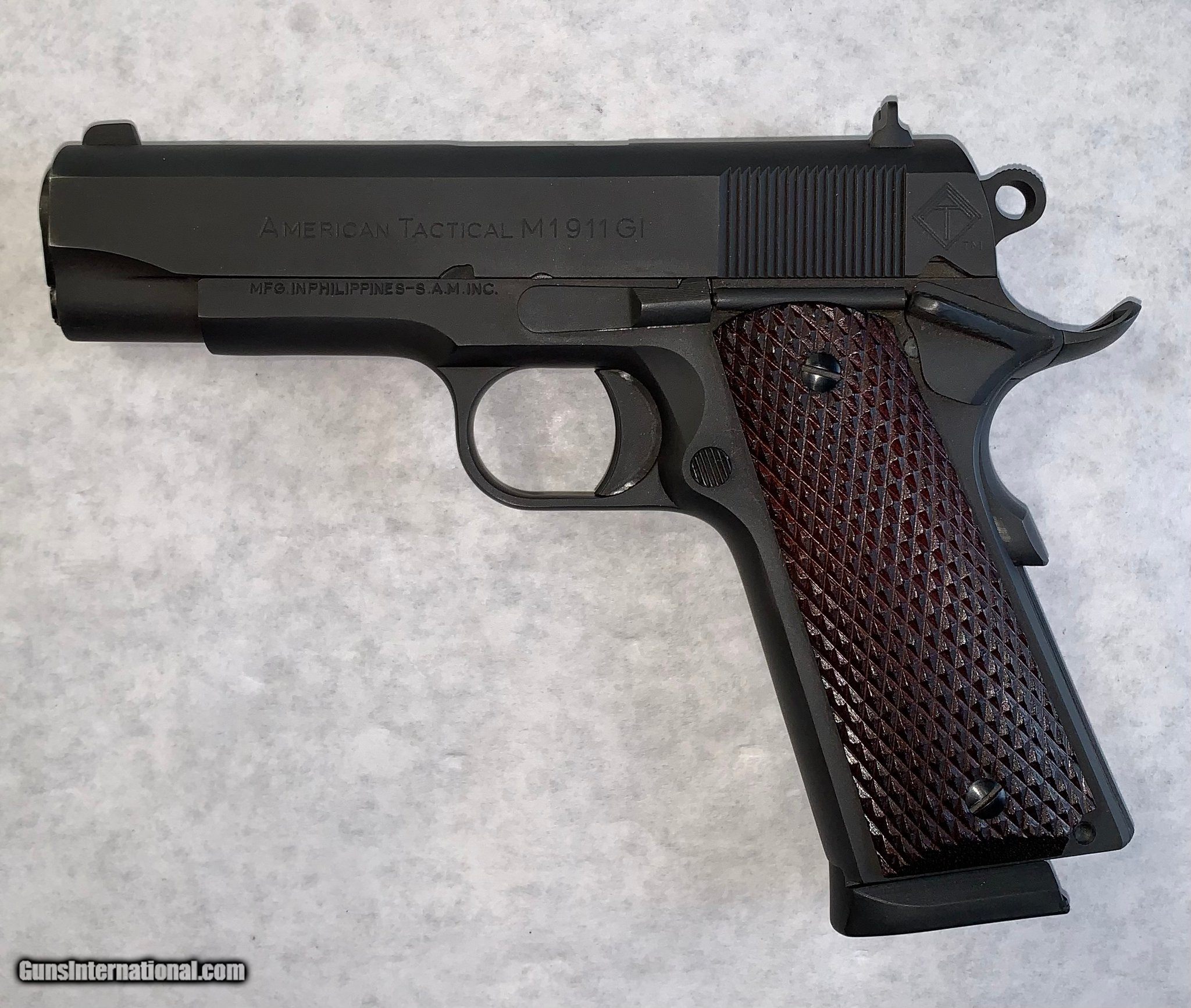 Description: Guns Listing ID: 1365441 This pistol is in great condition and comes with 1-10 round magazine. SOLD Manufacturer: ATI Model: M1911 GI Caliber Info: 9MM LUGER (9X19 PARA) Condition: Used - Non-Certified Barrels: 4.25 BARREL Finish: STEEL/WOOD GRIPS |