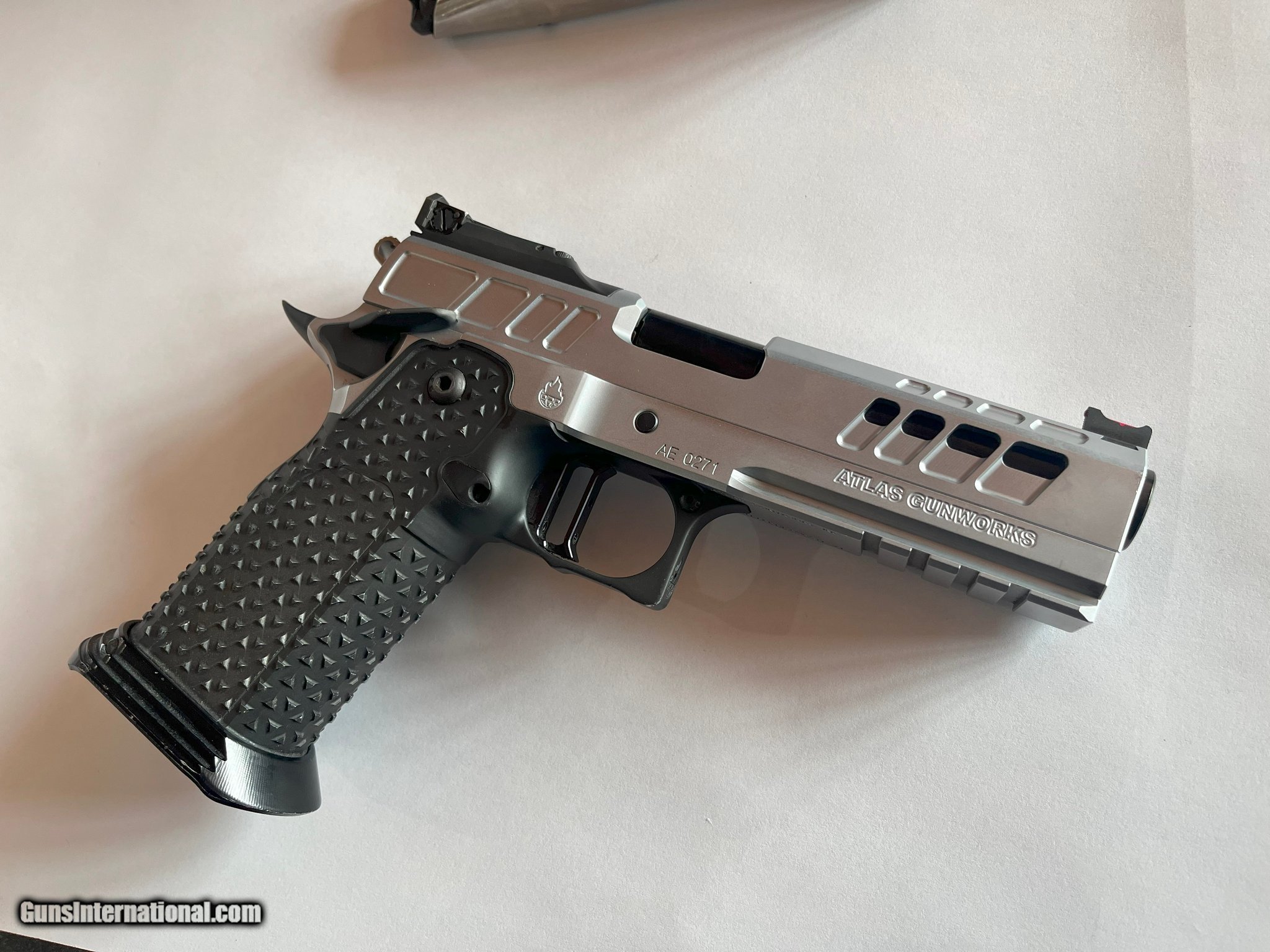 Description: Guns Listing ID: 1350773 Pre Owned Atlas Gunworks Athena V2 in Hard Chrome. Firearm is in very good condition. Shows minimal wear on hand grips and magazine base plate. These guns shoot incredibly well. Rear Adjustable Sight Fiber Optic Front Sight Mag Well Adjustable Triger 1 - 140mm 23rd Magazine Soft Case SOLD Manufacturer: ATLAS GUNWORKS Model: ATHENA V2 Caliber Info: 9MM LUGER (9X19 PARA) Condition: Used - Non-Certified Barrels: 4.6 BARREL |