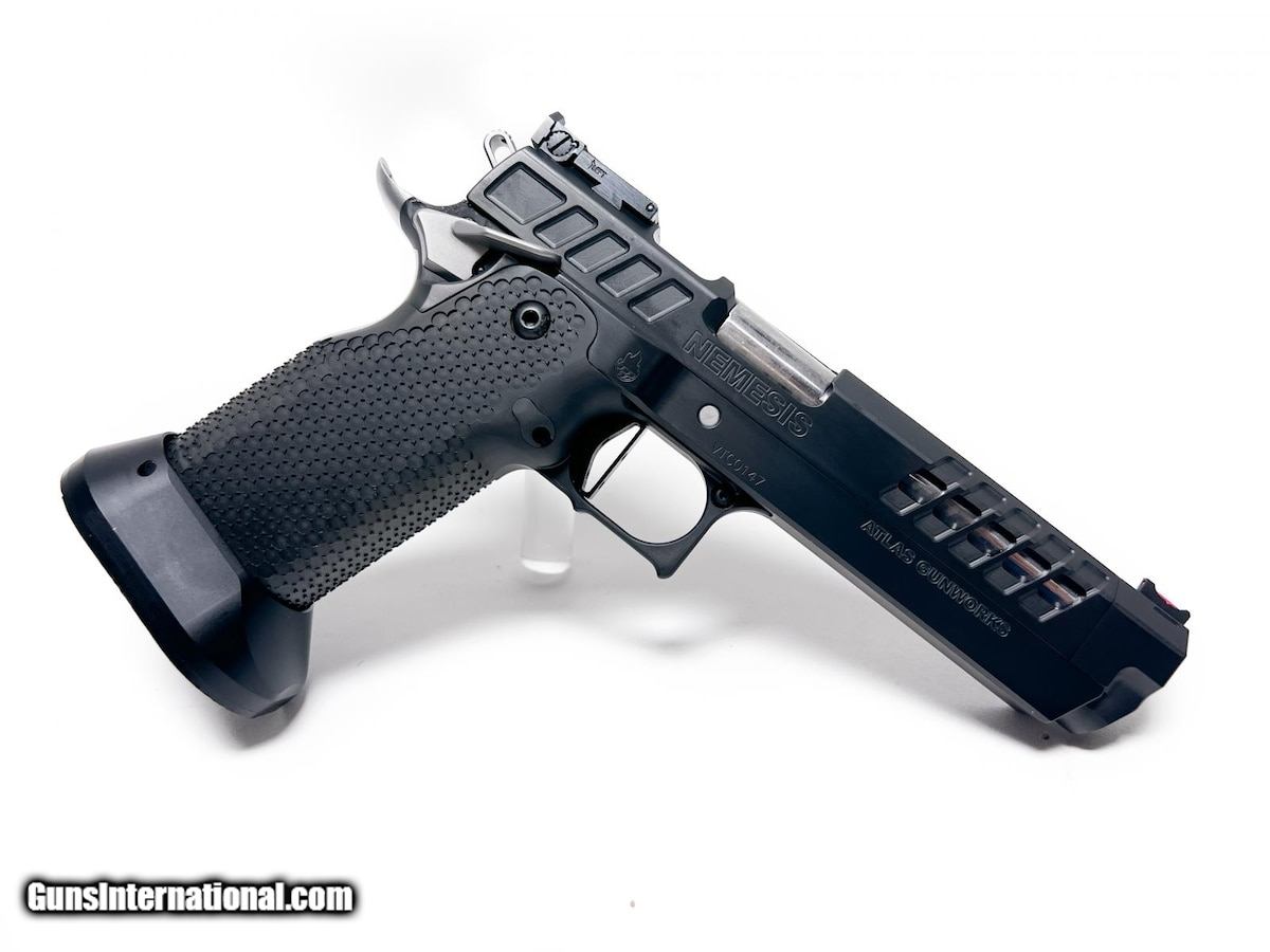 Description: Guns Listing ID: 801447 Pre Owned Atlas Gunworks Nemesis V1 40 S&W, 5\" Barrel with Sightblock, Two Tone Finish, Black Trigger, No Magazine, Atlas Gunworks Bag SOLD Manufacturer: ATLAS GUNWORKS Model: NEMESIS-V1-40 Caliber Info: .40 S&W Condition: Used - Non-Certified Barrels: 5 BARREL |