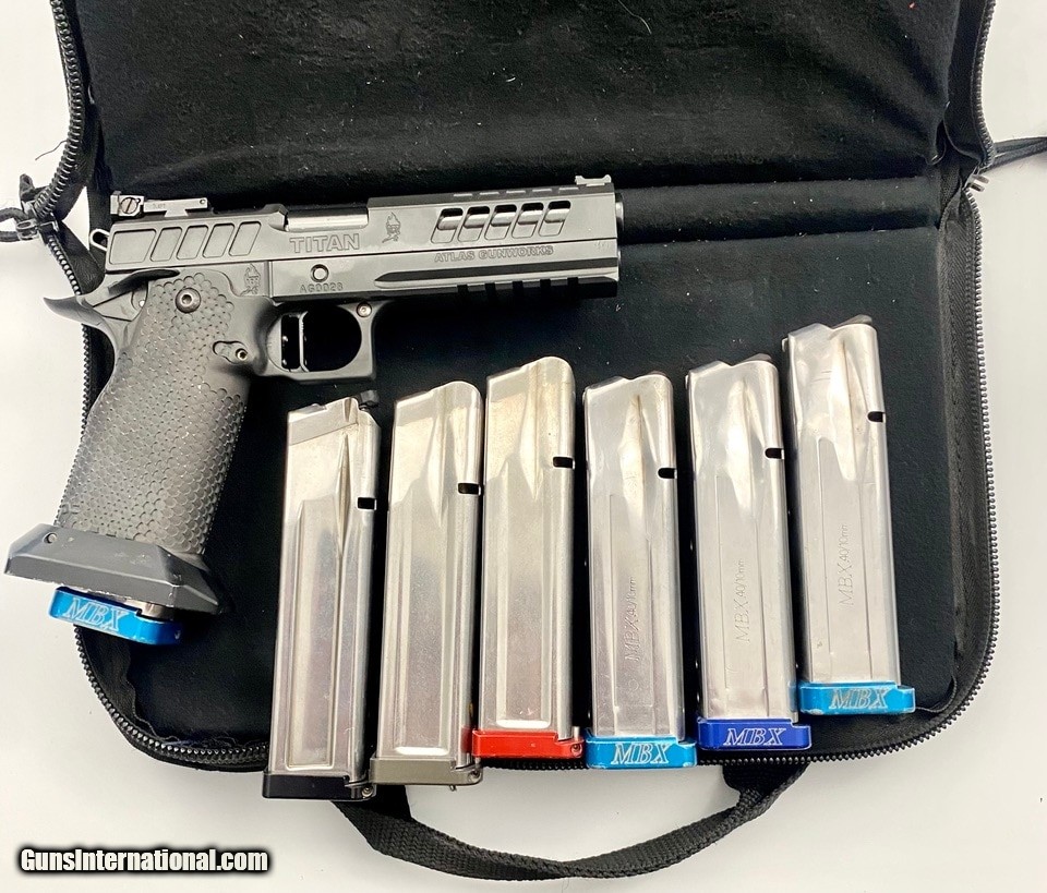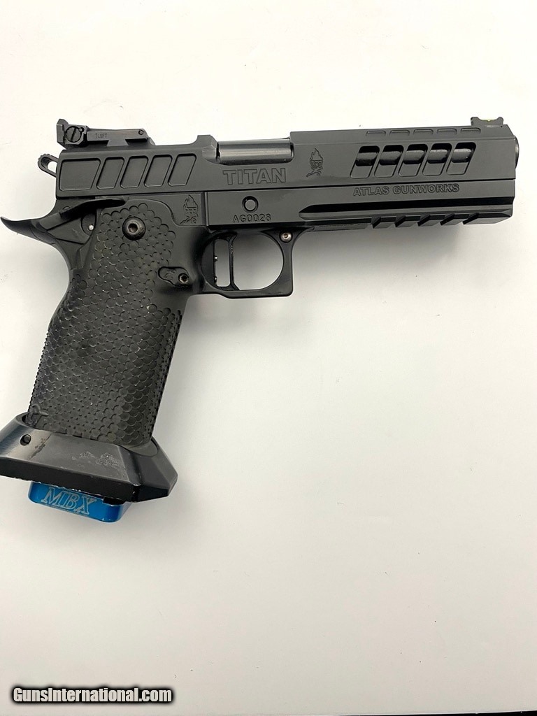 Description: Guns Listing ID: 1198973 Pre-Owned Atlas Titan. It‚‚s in good condition. It has some wear and scuffs on the magwell and grips. It Comes With: - Original Case - 7 Magazine SOLD Manufacturer: ATLAS GUNWORKS Model: TITAN Caliber Info: .40 S&W Condition: Used - Non-Certified Barrels: 4.75 BARREL Finish: BLACK |