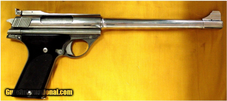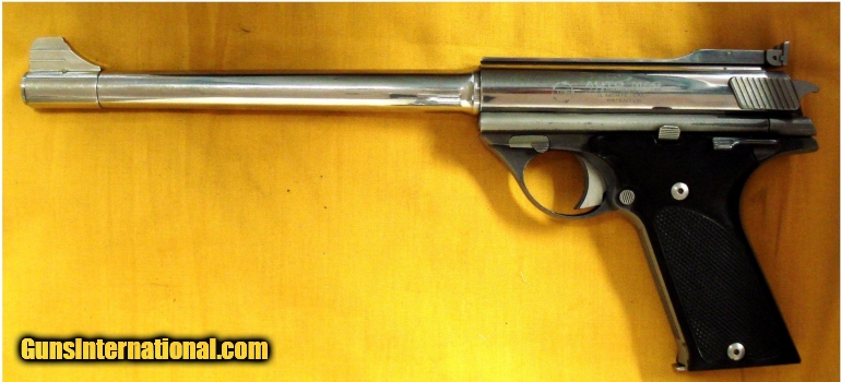 Description: AUTO MAG model 180 in .44 AMP CAL., with 10 1/2" barrel. Color STAINLESS STEEL. THIS EL MONTE CALIF.MADE PISTOL IS IN EXC. OVERALL CONDITION GRADING 95% PLUS WITH EXC. CHECKERED HARD PLASTIC GRIPS. Condition 95% PLUS. SOLD |