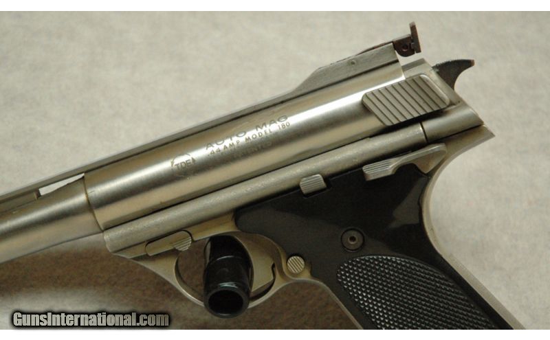 Description: TDE Auto Mag 180 Pistol .44 AMP. Excellent condition, with one mag and hard case. The .44 AutoMag pistol (AMP) is a large caliber semi-automatic pistol. It was designed between 1966 and 1971 by the AutoMag Corporation to make a semi-automatic pistol chambered in .44 AMP.The short-recoil operated AutoMag pistol featured a rotary bolt with locking lugs located at the front similar to the M16/AR-15 rifle. The AutoMag is a heavy pistol designed to give handgun owners .44 Magnum power in a semi-automatic pistol. The .44 AutoMag was designed to shoot .429-inch, 240-grain bullets at about the same velocity as the .44 Magnum revolver. SOLD Caliber Info: .44 AMP Chambers: Semi-auto. Metal Condition: Excellent, light finish wear, small nicks and scratches. Wood Condition: Grips are in excellent condition. Bore Condition: Bright. Barrels: 7" Barrel. Triggers: Single action. Stock: Factory grips. Weight: 58 Ozs. Sights: Adjustable iron sights. Extras: Comes with one mag and hard case. Item Location: La Vista, NE |