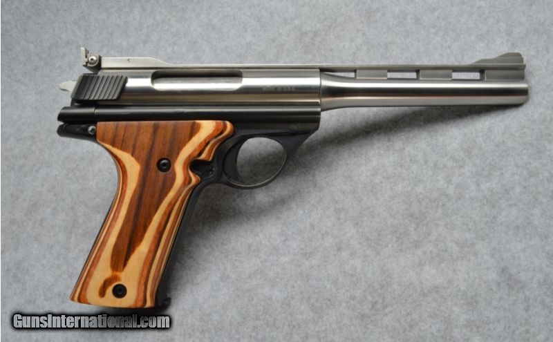 Description: The short-recoil operated Auto Mag pistol featured a rotary bolt with locking lugs located at the front similar to the M-16/AR-15 rifle. His big brother .44 AMP was the gun used in the movie Sudden Impact with Clint Eastwood.This is a beautiful gun very little use looking for some range time. SOLD Caliber Info: .357 AMP Chambers: 7 Rounds. Metal Condition: Like new. Wood Condition: Like new good color and pattern. Bore Condition: Like new bright and shiny Barrels: 6 Inch. Triggers: Single single action. Stock: Multi color laminate wood. Weight: 3 Pounds 9 Ounces. Sights: Factory adjustable target. Extras: Factory box and a set of RCBS reloading dies. Item Location: Noblesville, IN |