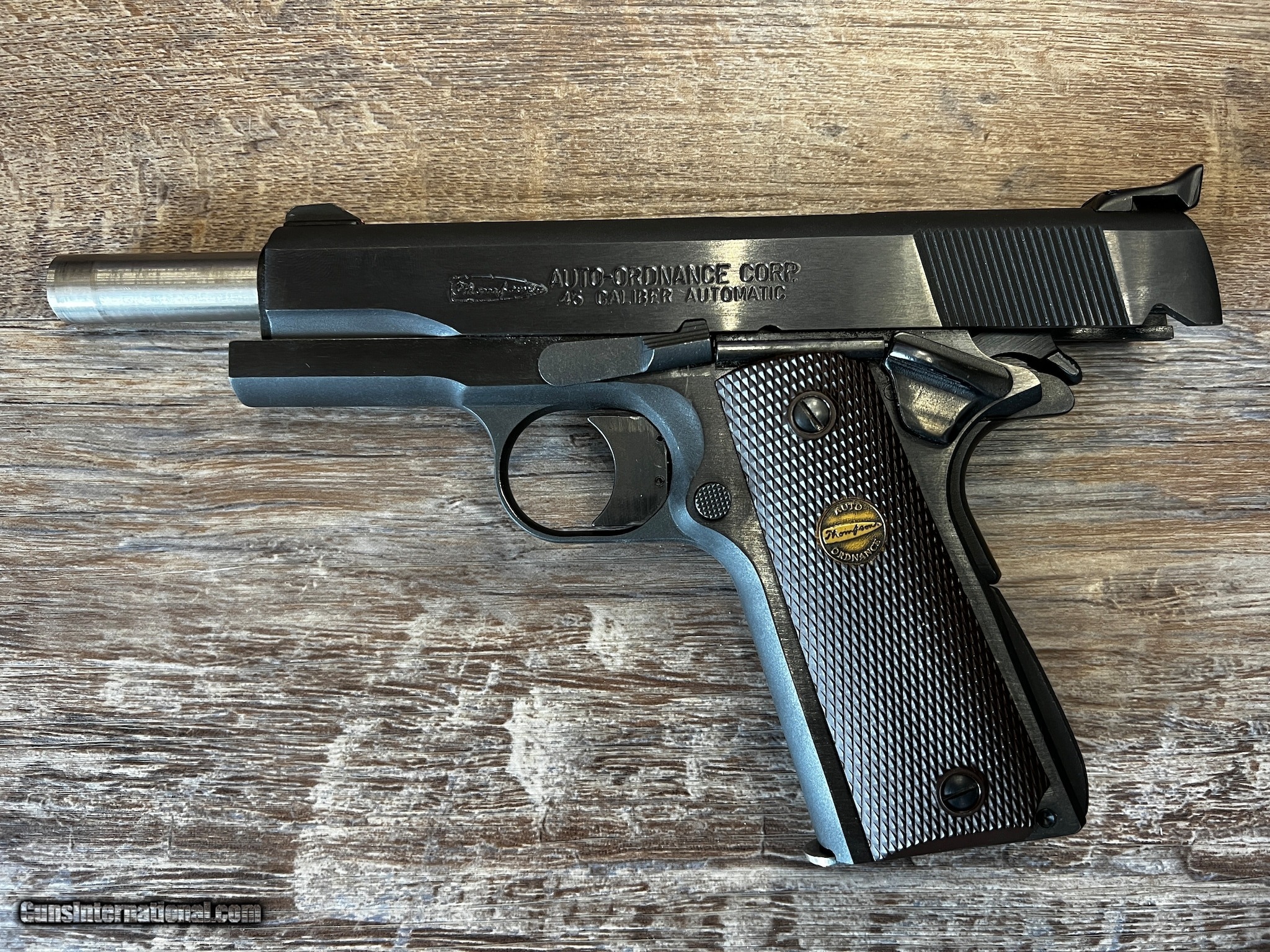 Description: Guns Listing ID: 281726 This 1911 has a 5in barrel with 2 magazines, a holster and a soft case. SOLD Manufacturer: AUTO-ORDNANCE Model: 1911 Caliber Info: .45 ACP Condition: Used - Non-Certified Barrels: 5 BARREL Action: SEMI AUTOMATIC Finish: BLUED Weight: not specified |