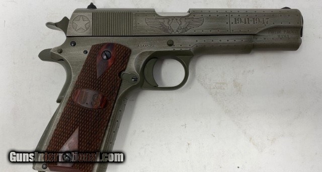 Description: AUTO 1911 FLY GIRLS 45 WD7 Auto Ordnance 1911BKOWC2 Fly Girls Special Edition World War II 1911 Pistol 45 ACP 5" Barrel Wood Grips with US Logo Custom Engraved with the Original Fly Girls Script Two Color Black & Olive Drab Green Cerakote Fini SOLD |