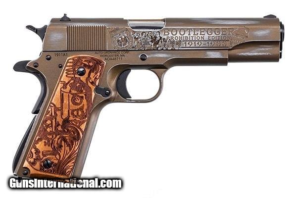 Description: Guns Listing ID: 473316 The Roaring 20s blazed a trail into American pop culture and history. - Auto-Ordnances latest custom guns commemorate the era with the Bootlegger Thompson and 1911. Each gun is artfully engraved with depictions of 1920s autos newspaper print wanted posters and historical images from the time. - The Thompson barrel is marked Speakeasy. The 1911 slide and Thompson receiver are engraved Bootlegger Prohibition Edition and Proof Tennessee Moonshine. Beautiful scrollwork covers the American Walnut wood furniture and sections of the steel. The finish is distressed Burnt Bronze Cerakote with a clear coating overlayed. The wood furniture is also distressed and then stained. - CALIBER .45 ACP - MAGAZINE (1) 7rd capacity - BARREL 5\" - GRIPS Engraved American Walnut Wood SOLD Manufacturer: AUTO-ORDNANCE Model: 1911 Bootlegger Special Edition .45 Caliber Info: .45 ACP Condition: new Barrels: 5" barrel Finish: BURNT BRONZE CERAKOTE |