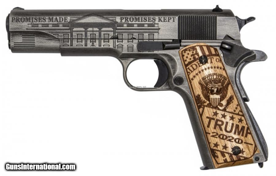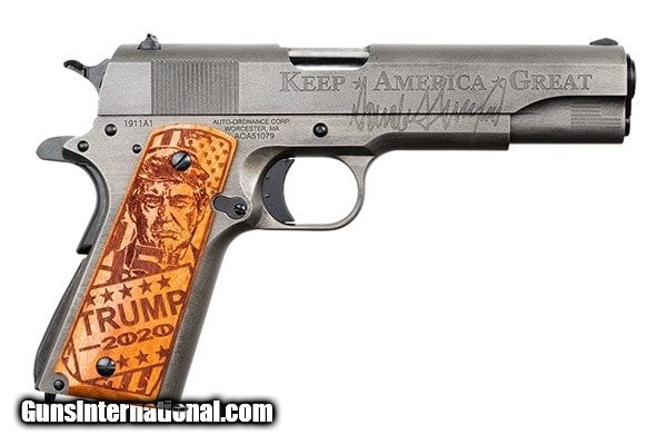 Description: Guns Listing ID: prod141672 This enhanced Auto-Ordnance 1911A1 is laser etched on the right side of the slide with the President‚‚s motto, \"Keep America Great\". His signature adorns both slide and frame. An advancing Am SOLD Manufacturer: AUTO-ORDNANCE Model: 1911 TRUMP PROMISE 2020 SE Caliber Info: .45 ACP Condition: new Barrels: 5 BARREL Finish: DISTRESSED |
