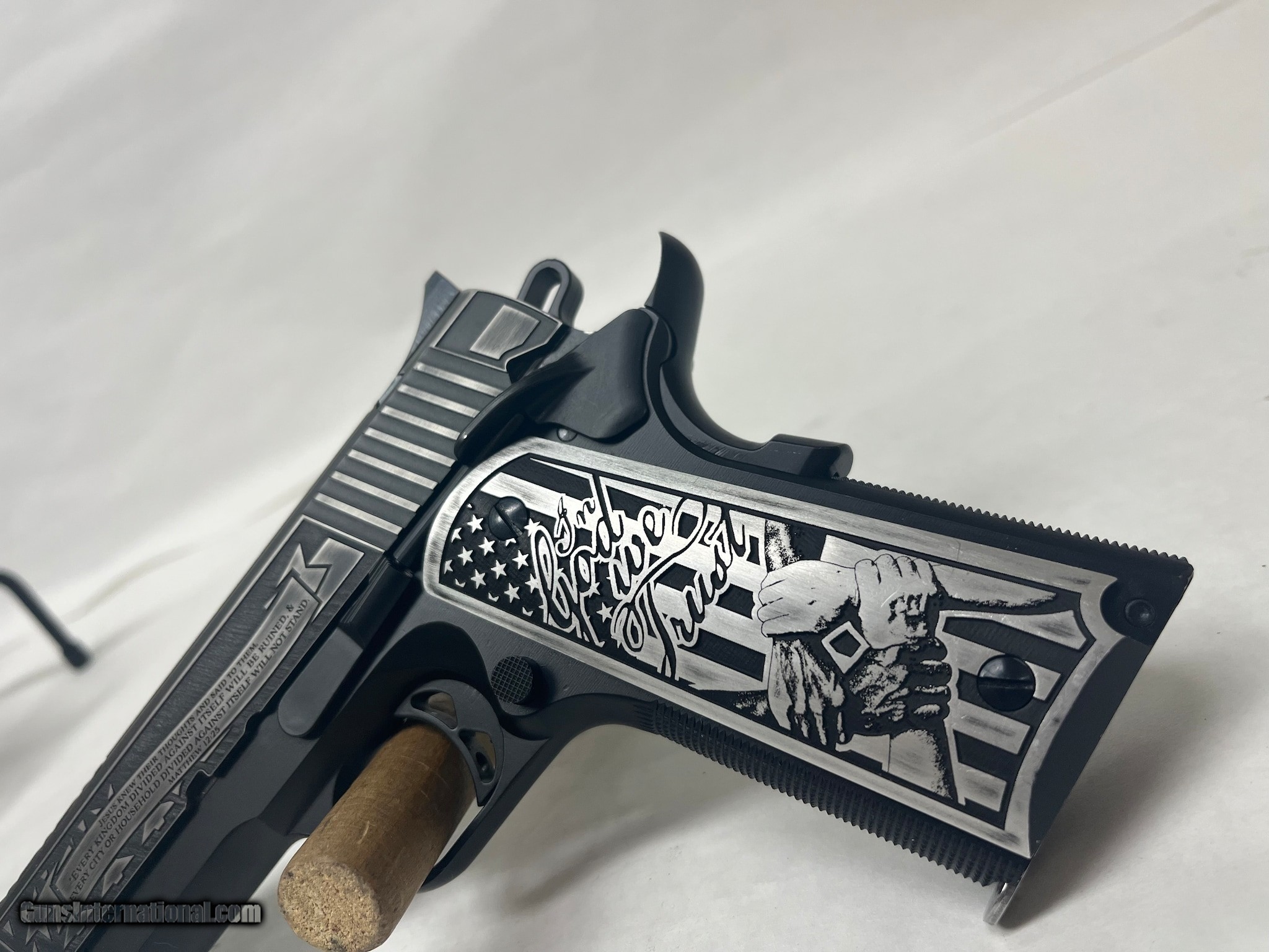 Description: Guns Listing ID: 791630 The United We Stand 1911 starts as an Auto-Ordnance 1911TCAC6 model pistol. This stainless steel 1911 is made entirely in the United States. The finish is Black Armor Cerakote with a clear coating. It features an adjustable trigger, skeletonized hammer, full-length recoil guide rod, extended beavertail grip safety, extended magazine release, and a checkered slide stop lever. TruGlo® night sights are standard. The ejection port is flared to aid in reliable function. Both mainspring housing and front strap are machined checkered at 20 lines per inch. Each pistol’s 5” match grade barrel is chambered in .45 ACP. One 7 round magazine is included. SOLD Manufacturer: AUTO-ORDNANCE Model: 1911 UNITED WE STAND EDITION Caliber Info: 45 ACP Condition: Used - Non-Certified Barrels: 5 BARREL Finish: BLACK |