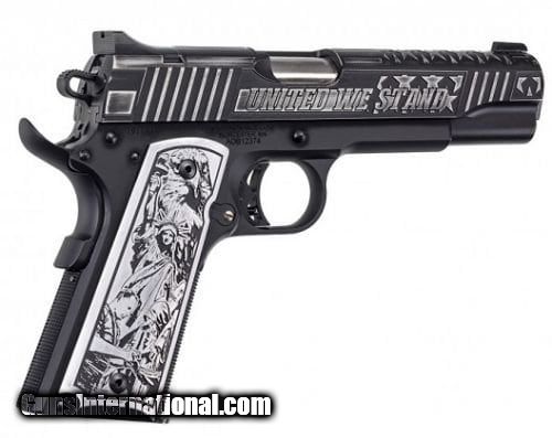 Description: Guns Listing ID: 444206 This United We Stand Special Edition 1911 features a stainless steel frame and slide, checkered front strap, and 5\" barrel. It also has an aluminum engraved grips with custom engraved \"United We Stand\" and Matthew 12:25 Bible verse. The pistol is finished in Black Armor Cerakote with stainless accents. It comes with one 7-rd stainless steel magazine. SOLD Manufacturer: AUTO-ORDNANCE Model: 1911 Caliber Info: .45 ACP Condition: new Barrels: 5 BARREL Finish: BLACK ARMOR CERAKOTE |