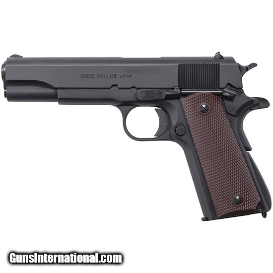 Description: Guns Listing ID: 1615 The Auto-Ordnance 1911A1 is a semi-automatic pistol chambered in 45 ACP. A 5 barrel is complemented by a blade front sight and a drift-adjustable rear sight. This pistol is available with brown checkered grips in either wood or plastic form. The Auto-Ordnance 1911A1 also features both a thumb and grip safety. Details Action SA - Caliber .45 ACP - Capacity 7rd - Barrel 5 - Sights Drift Adjustable Rear Blade Front - Receiver Steel Matte Black - Slide Steel Matte Black - Grips Plastic Brown - Safety Thumb Safety Grip Safety Firing Pin Block - Length 8.5 - Weight 39oz - Series 80 SOLD Manufacturer: AUTO-ORDNANCE Model: 1911 Caliber Info: .45 ACP Condition: new Barrels: 5" barrel |