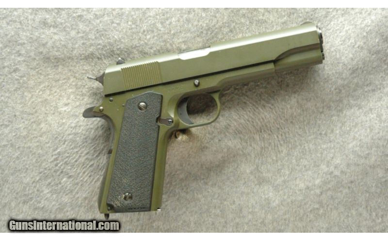 Description: Auto Ordnance Model 1911A1 pistol .45 Auto. Excellent condition, with 2 mags and hard case. Good pick for target practice or home defense or anyone wanting a 1911 style handgun. SOLD Caliber Info: .45 Auto Metal Condition: Excellent, Light Finish Wear, Few Small Nicks & Scratches Wood Condition: Grips Are In Excellent Condition Bore Condition: Bright Barrels: 5" Barrel, OD Green Finish Triggers: Single Action Stock: Factory Grips Weight: 2 Lbs 8 ozs Sights: Iron Sights Extras: With 2 mags and hard case Item Location: La Vista, NE |