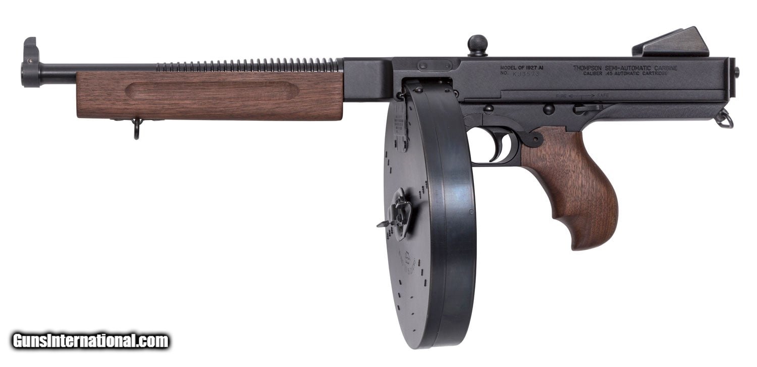 Description: Guns Listing ID: 803976 The Auto-Ordnance Thompson Lightweight Deluxe is a single-action semi-automatic pistol chambered in 45 ACP with available magazines ranging from 10 rounds to 100 round drums. Crafted with painstaking effort towards historical accuracy the Thompson Lightweight Deluxe makes use of the original designs dating back to 1919. A 10.5 aluminum barrel is accompanied by a walnut horizontal foregrip and pistol grip. Even with all that the Thompson Lightweight Deluxe comes in just under six pounds in weight not including your choice of magazine. Details AUT TC 1927A-1 LTWT 1.5 1RD SOLD Manufacturer: AUTO-ORDNANCE Model: 1927A-1 LTWT DELUXE Caliber Info: .45 ACP Condition: new Barrels: 2.3 BARREL |