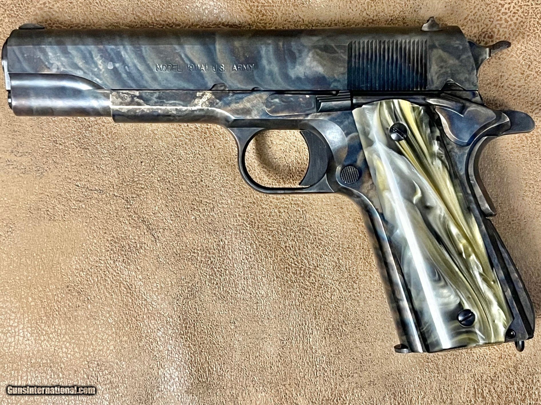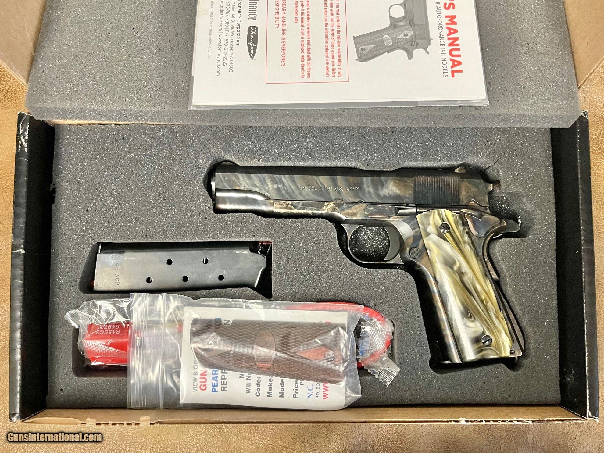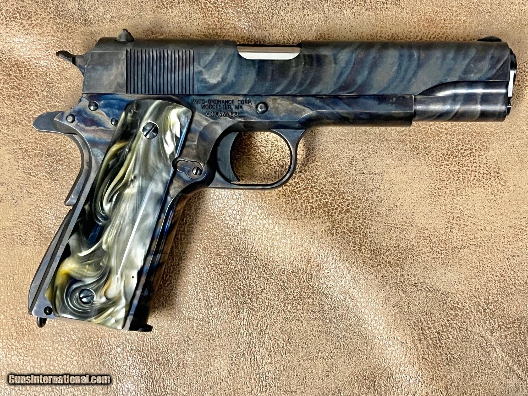 Description: Guns Listing ID: 1278715 Auto-Ordnance 1911A1 GI 45ACP CASE HARDENED FINISH, U.S. LOGO, 7-Rd factory mag, 8-Rd Wilson Combat Mag, aftermarket grips, and original wood grips, in the original box SOLD Manufacturer: AUTO-ORDNANCE Model: CASE HARDENED Caliber Info: .45 ACP Condition: Used - Non-Certified Barrels: 5 BARREL |