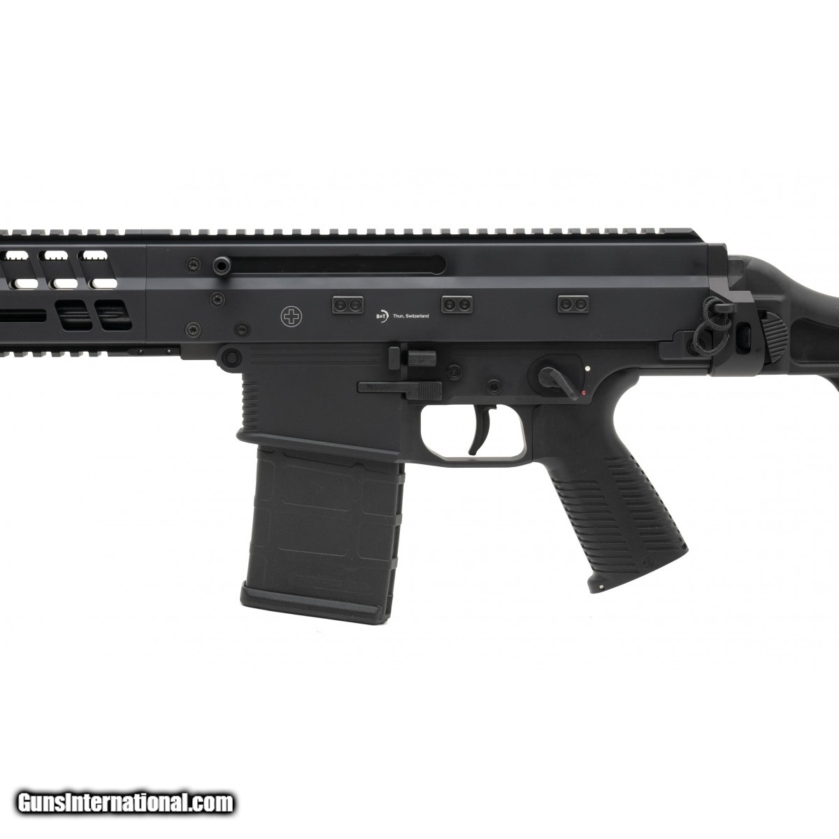 Swiss made semi-auto rifle with a 18"" fluted barrel, a non-reciprocating charging handle and a side folding stock. NEW. UPC:840225705690.