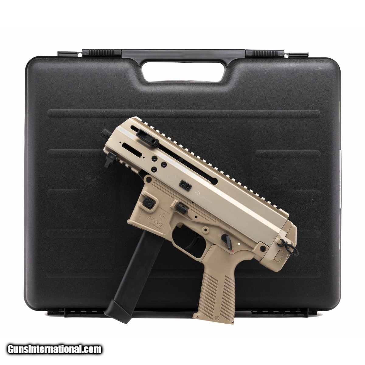 Description: " Swiss made tactical pistol with threaded barrel. Takes Glock magazines. Tan finish. Non-reciprocating charging handle. NEW. UPC:840225705577 SOLD |