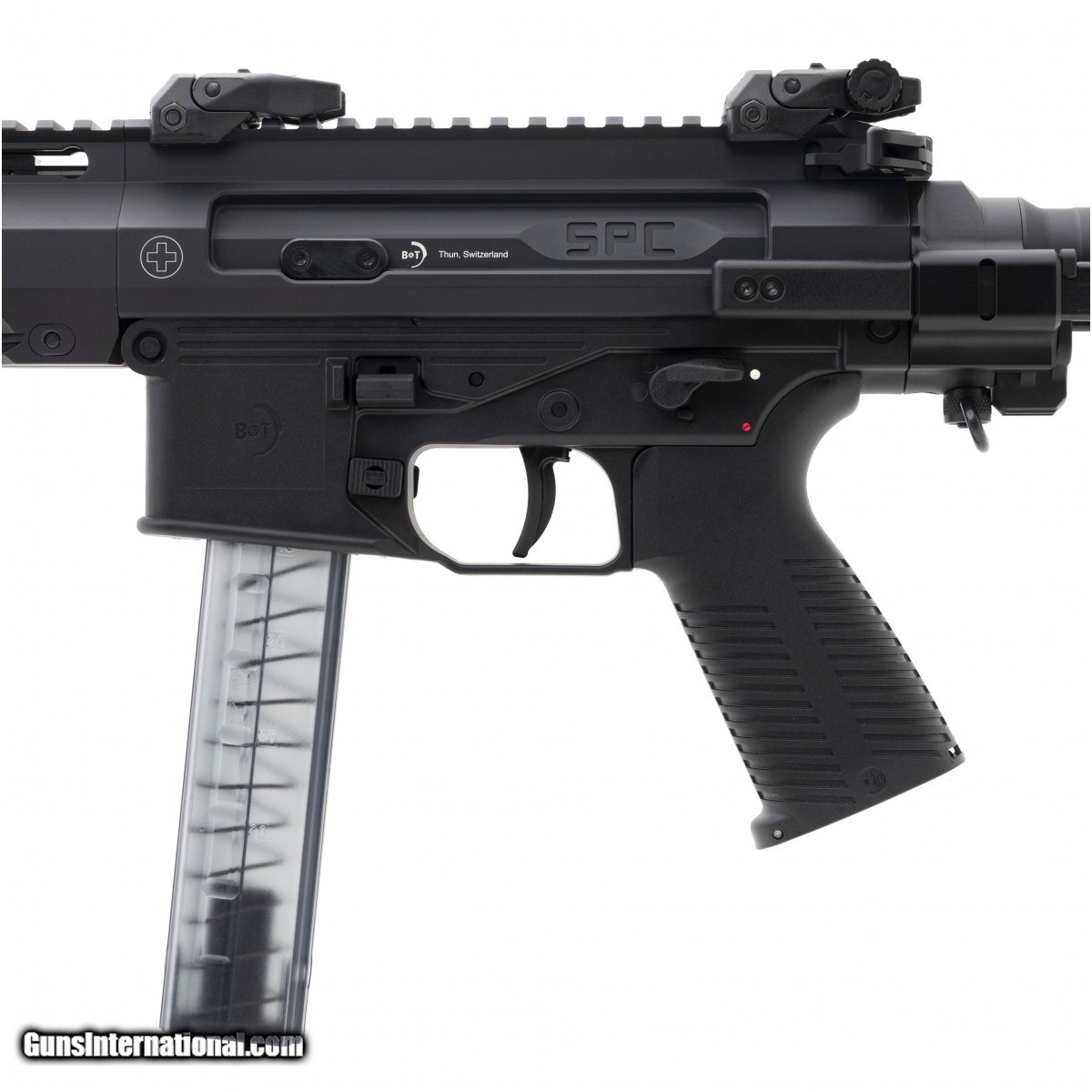 Description: " Premium Swiss tactical pistol 4.5"" threaded barrel, ambidextrous controls, hydraulic buffer system and both rear and side charging handle. Comes with back pack, sling, cleaning gear and tri-lug mount. NEW. UPC: BT-500003-PDW SOLD |
