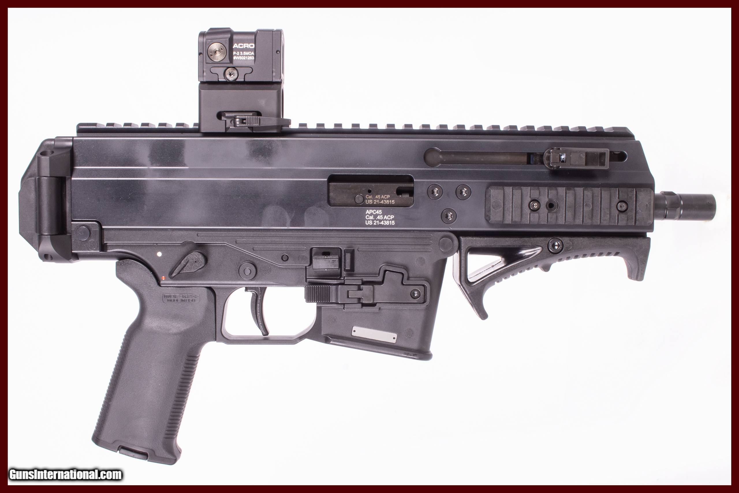 Description: B&T APC45 chambered for .45 ACP : This pistol features quad rail configuration with AimPoint Acro P-2, seven-inch barrel with tri-lug, and fully ambidextrous controls. Action is fully functional and bore mirror bright with sharp rifling. Few minor surface scratches - The NRA grading condition for this USED firearm is Good to Very Good. We ship domestically in the United States. Additional shipping rates apply to Alaska and Hawaii. Dury’s Lifetime Warranty: All firearms purchased from Dury’s Gun Shop, NEW or USED, are covered by a lifetime warranty. We will repair or replace, at our discretion, any firearm purchased from Dury’s Gun Shop, Inc. for as long as it is owned by the purchaser. This warranty is not transferable. WE BUY GUNS! NO COLLECTION TOO BIG OR SMALL FOR OUR GUNS INTERNATIONAL CUSTOMERS ALL OF OUR FIREARMS CAN BE PURCHASED DIRECTLY FROM OUR DURY’S GUNS SITE ! SOLD Manufacturer: B&T Model: APC45 Caliber Info: 45 ACP Barrels: 7inches |