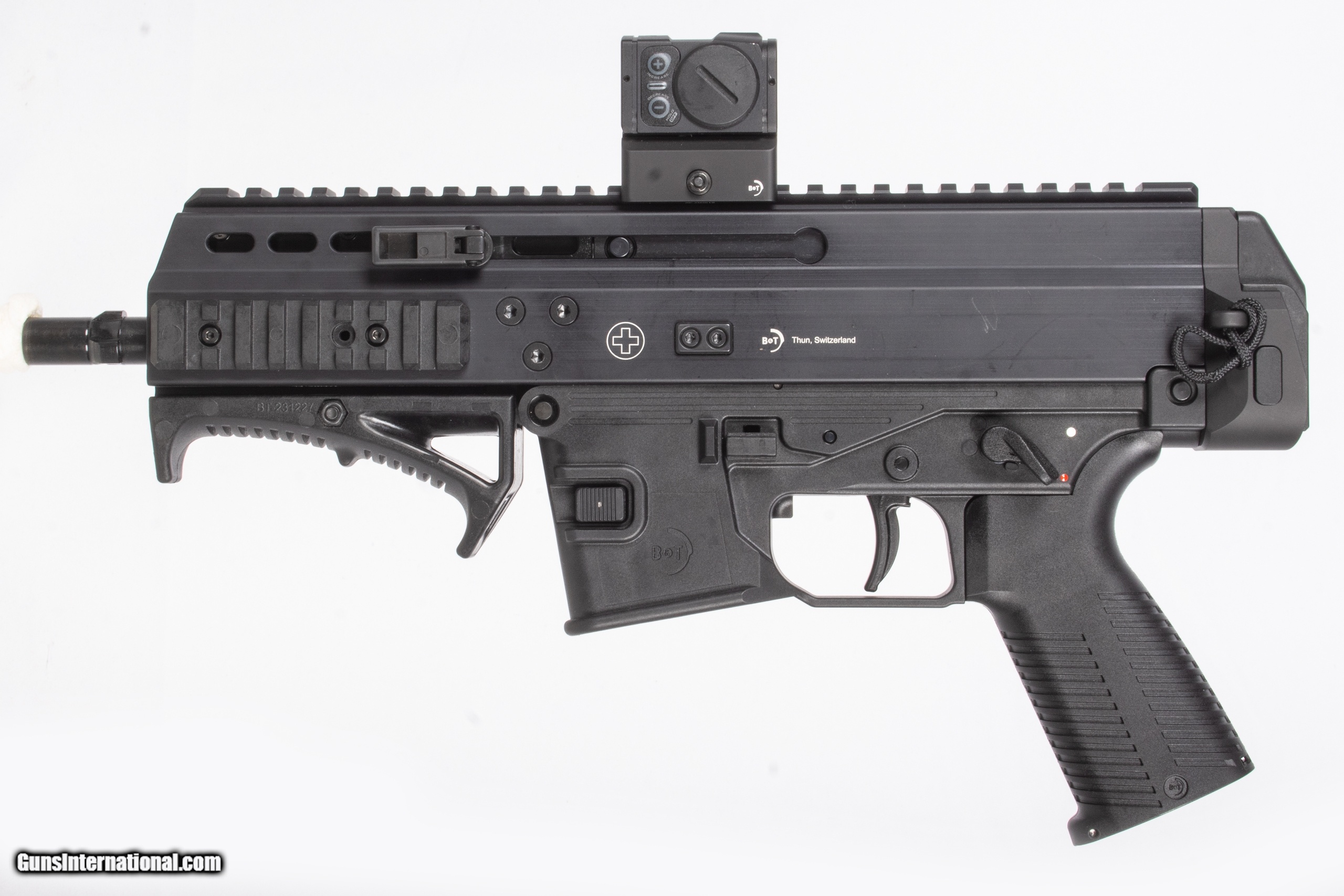 Description: B&T APC9 chambered for 9mm Luger : This pistol features a seven-inch barrel with tri-lug, matte finish, ambidextrous controls including mag release, safety, and bolt catch, quad picatinny rails, Glock magazine compatibility, and AimPoint Acro P-2 red dot sight. The action of this pistol is fully functional, and the bore is mirror bright with sharp rifling. Exterior surfaces show minor scuffs. The NRA Grading condition for this USED firearm is Very Good. We ship domestically in the United States. Additional shipping rates apply to Alaska and Hawaii. Dury’s Lifetime Warranty: All firearms purchased from Dury’s Gun Shop, NEW or USED, are covered by a lifetime warranty. We will repair or replace, at our discretion, any firearm purchased from Dury’s Gun Shop, Inc. for as long as it is owned by the purchaser. This warranty is not transferable. WE BUY GUNS! NO COLLECTION TOO BIG OR SMALL FOR OUR GUNS INTERNATIONAL CUSTOMERS ALL OF OUR FIREARMS CAN BE PURCHASED DIRECTLY FROM OUR DURY’S GUNS SITE ! SOLD Manufacturer: B&T Model: APC9 Caliber Info: 9 mm Barrels: 7inches |