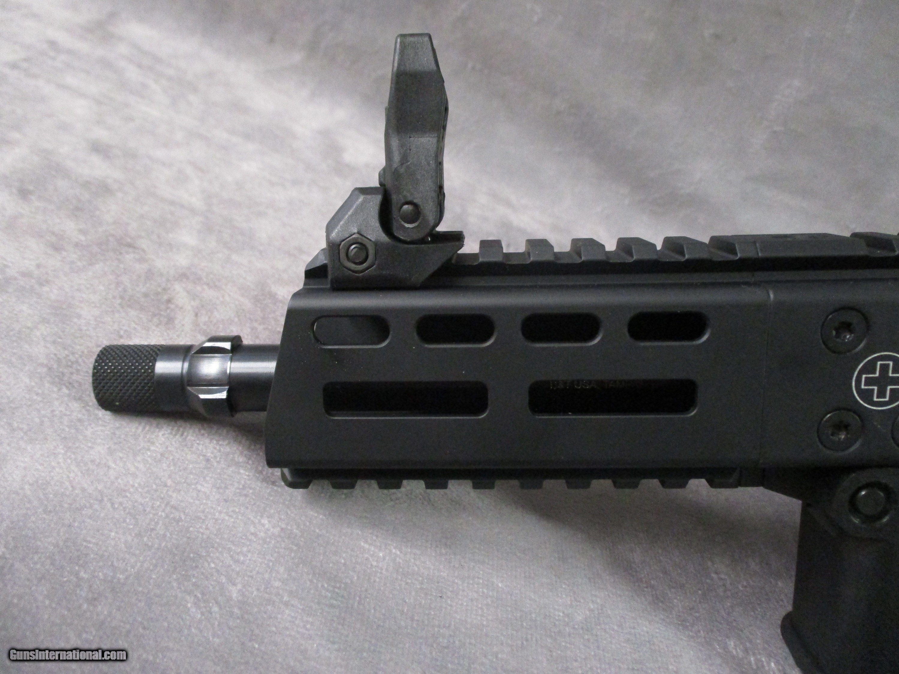 Description: The Brügger & Thomet GHM9 is a neat little semi-auto tactical pistol that is very suitable for home defense. It is named after the famous Grasshopper Mouse, a small, carnivorous rodent who likes to snack on scorpions and snakes and is immune to their venom. They live in the Southwestern United States and are nocturnal in nature. The GHM9 features a compact, modular design. It has fully ambidextrous controls, flip-up sights, and picatinny rails for attachments. The side rails are detachable. The charging handle can be swapped from left to right. The barrel features a tri-lug and is threaded for use with a variety of muzzle devices. The GHM9 is based on the APC9 which was originally created to fulfill a potential U.S. Military contract. It’s interesting to note that the U.S. Army ultimately purchased 350 APC9K SMGs in 2019 for use by its Personal Security Detachments. It beat out the other submissions from bigger name brands like H&K, Sig Sauer, CZ, and PTR. The U.S. Air Force followed suit in 2020 with a purchase of 65 APC9K SMGs for its own Personal Security Detachments. This speaks volumes for the basic quality of the B&T design. The GHM9 is compatible with APC9 PRO lower receivers, meaning it can be equipped to use Glock magazines, Sig Sauer P320 mags, or B&T’s own proprietary magazines. All this can be done by simply switching out the non-serialized lower receiver group. The example shown here uses the B&T 30-round magazine. The GHM9 uses an M4-compatible pistol grip and will accept most other AR-15 aftermarket grips. Length without a brace is 17.125 inches (435 mm). The width including the charging handle is 2.56 inches (65 mm). This example is new in the box. Again, this is the semi-auto pistol version. It comes with one 30-round B&T magazine, a large case, an owner’s manual, a single-point nylon sling, two Magpul M-Lok 7-slot picatinny side rails, and a magazine loading assist device. SOLD Handgun Caliber: 9x19mm Parabellum (9mm Luger, 9x19mm NATO) Manufacturer: Brugger & Thomet Model: GHM9 Serial Number: US 22-67320 Bore: Rifled, 6 grooves, 1:10 inches (1 in 254 mm) RH twist Ejectors: Auto-ejection Condition: New in Box Barrels: Steel Barrel Type: Threaded, with Tri-Lug Action: Closed bolt blow back system, semi-automatic Triggers: Smooth combat trigger Fore End: Aluminum Finish: Type III Hard Coat Anodized Weight: 5.5 lbs. Sights: Flip-up sights, sight radius 12.5625 inches (319.1 mm) Extras: See description Case: B&T hard case |