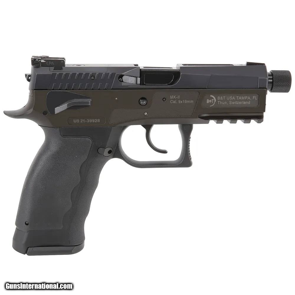 Description: Guns Listing ID: 322041 B&T’s MK II was designed for real-world use and comes packed with features. The slide has been outfitted with an optics cut to accept the Shield Reflex Mini Sight, and features an adjustable rear. The MK II also comes with a threaded barrel with M13.5x1 LH threading for use with a suppressor, a rubberized no-slip grip, and an under-barrel picatinny rail allows for the installation of lights, lasers, and other accessories. SOLD Manufacturer: B&T Model: MK II Caliber Info: 9MM LUGER (9X19 PARA) Condition: new Barrels: 4.3 BARREL Finish: BLACK |