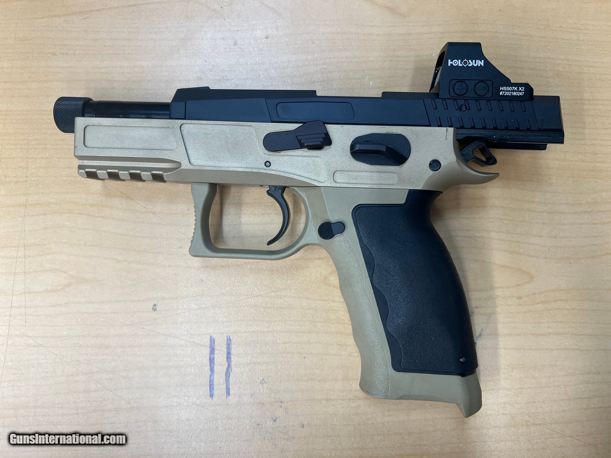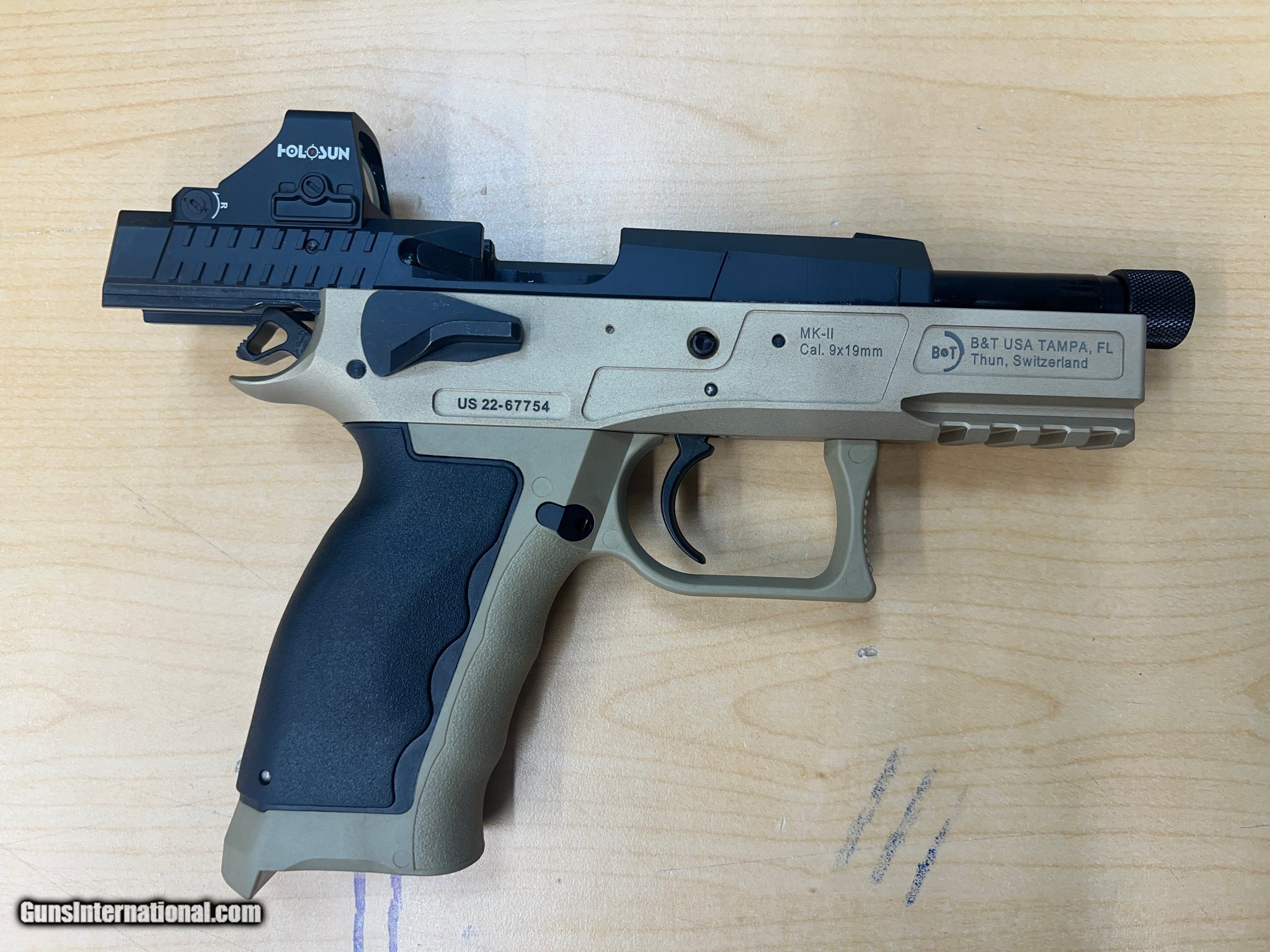 Description: Guns Listing ID: 491255 This double action pistol has a 4.25in threaded barrel and a tactical rail. It has an optic ready slide with a Holosun 507K red dot and one 19rd magazine. Soft case included. SOLD Manufacturer: B&T Model: MKII Caliber Info: 9MM LUGER (9X19 PARA) Condition: Used - Non-Certified Barrels: 4.3 BARREL Action: SINGLE ACTION Finish: TWO-TONE Weight: 1.92 LBS. |