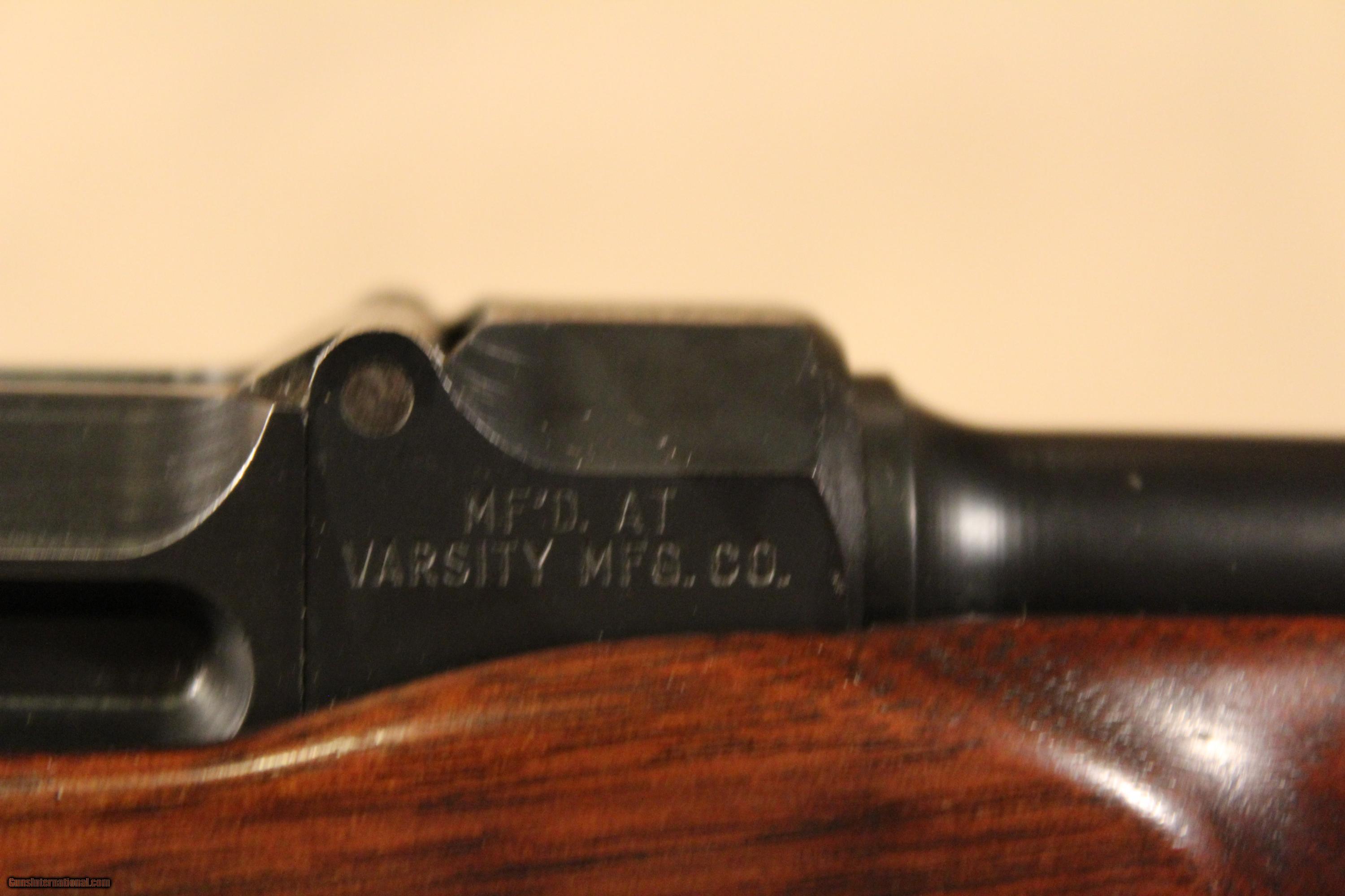 Description: Up for sale is an A. H. Thompkins single shot top loading .22 LR. This pistol is only one of approximately 200 made and is number 96. These pistols were licensed to be produced at Vartity Mfg Co in Springfield, MA somewhere around the late 40's to the early 50's. Very few of these pistols were produced with the black diamond, checkering, and black barrel tip. Upon research, only 4-5 were known to ever have checkering. Very rare pistol and in excellent conditon as well at 99% all around with a couple very small handling marks. Also comes with box and instruction manual. If any questions or concerns arise, do not hesitate to call the number above or email. Please add $35.00 for shipping. SOLD Curio/Relic: Yes Manufacturer: A. H. Thompkin Caliber Info: 22 LR Condition: Excellent Metal Condition: 99% Wood Condition: 98%+ Bore Condition: 99% Barrels: 8 Barrel Type: Single Action: Hinge Lock Triggers: Single Manufacture Date: 1947-1953 |