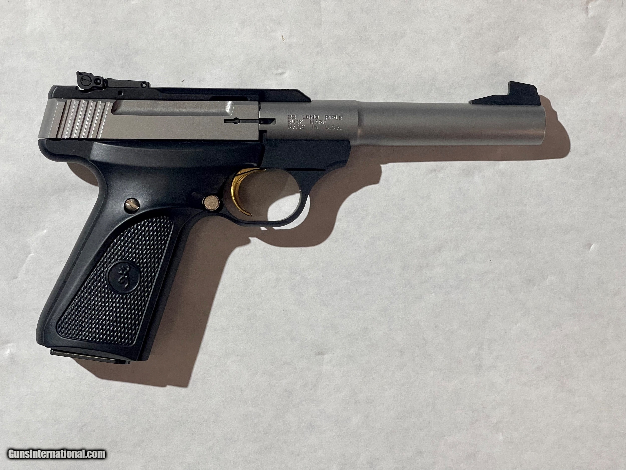 Description: Browning Buck Mark .22 URX Like New in Box With 3 Mags The Browning® Buck Mark® Standard URX Semi-Auto Rimfire Pistol gives you reliability and accuracy you can count on. The feature-packed Buck Mark stainless steel URX starts with a machined 7075 aluminum alloy semi-automatic pistol frame, finished in matte black. The slab-sided stainless steel barrel balances the pistol's weight perfectly, and the polished flats accentuate the Buck Mark's classic lines and good looks. Ambidextrous, overmolded soft nitrile Ultragrip RX® grip panels, with finger grooves help place the hand in the same position on the grip every shot, resulting in an instinctual hold that improves accuracy; a textured surface provides a secure hold in any type of shooting environment. The Pro-Target™ post-type front sight and adjustable rear sight allow for precise shooting at small targets. The light and crisp trigger is gold plated that compliments the over all appearance of the pistol. The Browning Buck Mark Standard URX Semi-Auto Rimfire Pistol operates on the Buck Mark's simple, straight blowback action that has been proven over time to be ultra-reliable. The Buck Mark uses a 10-round magazine with a durable heat-treated body, and coil springs that ensures consistent pressure on the shell follower at the proper angle. The magazine release is conveniently positioned next to the trigger guard where it is easily reached.