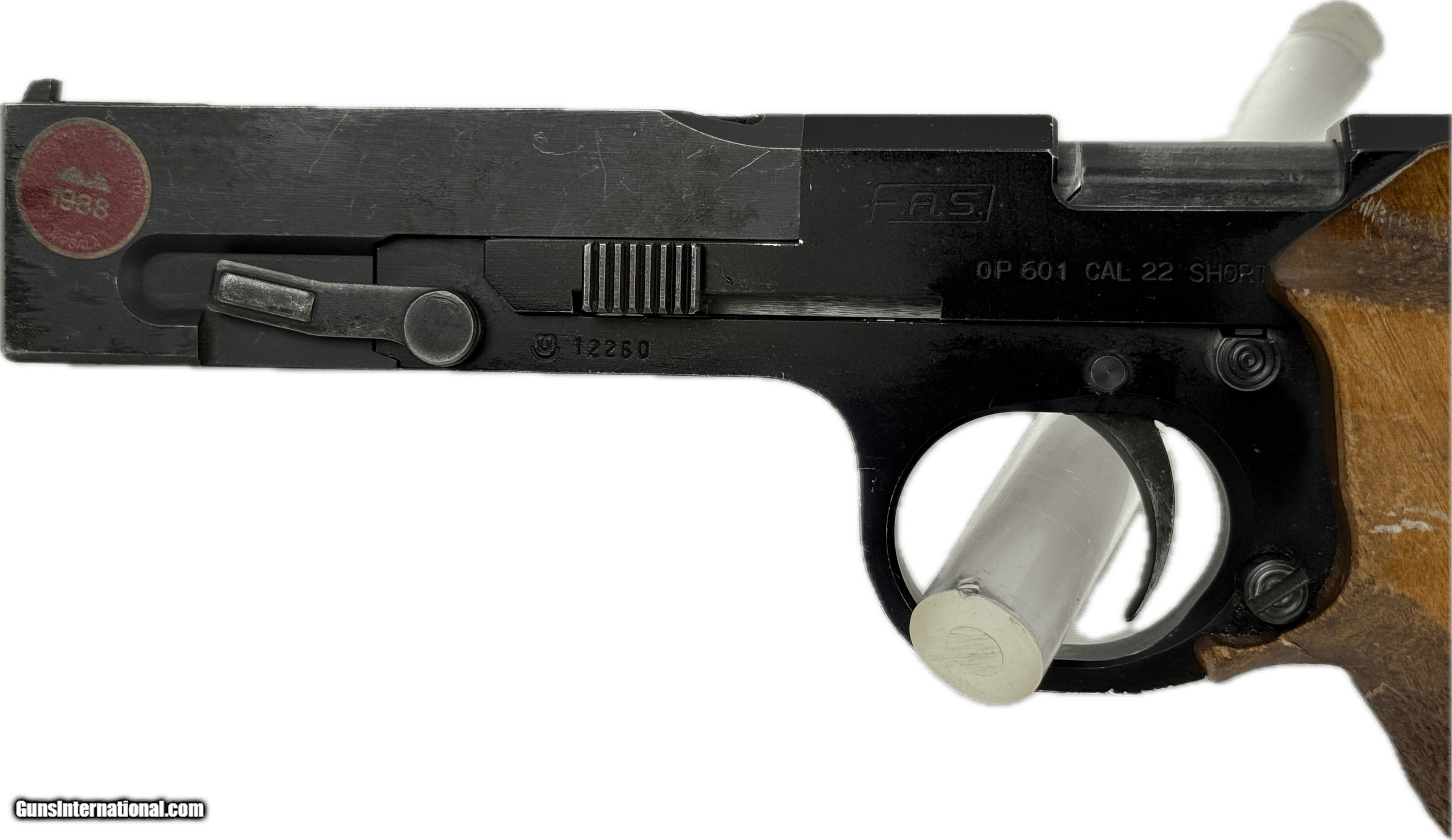Description: F.A.S., Model OP 601, .22 Short, 5.5” Ported Barrel, Wrap Around Contoured Small Right Hand Grip, Match Stickers, (MISSING Magazine), Made In Italy, Serial # 12260, Condition: Excellent, with edge wear, scattered scratches, added hard putty on grip, Bore: Bright. *******************************************************(MISSING Magazine)***************18110015/58************************(MISSING Magazine)***************************************************** *******Free Shipping(Lower 48 States only)*********************Layaway Available************************Trades Considered*******************FIREARMS MAY HAVE FOREIGN PROOF AND IMPORT MARKS******* If you are the winning , you will receive payment instructions in a confirmation email • Payment: We accept United State Postal Service Money Orders or Credit Cards Add 3.5% Service Fee- Visa, MasterCard & Discover.